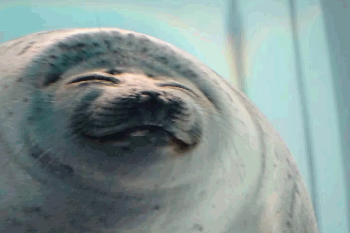まさに偶然撮れた、なんともゆるッとした表情のワモンアザラシ。。。