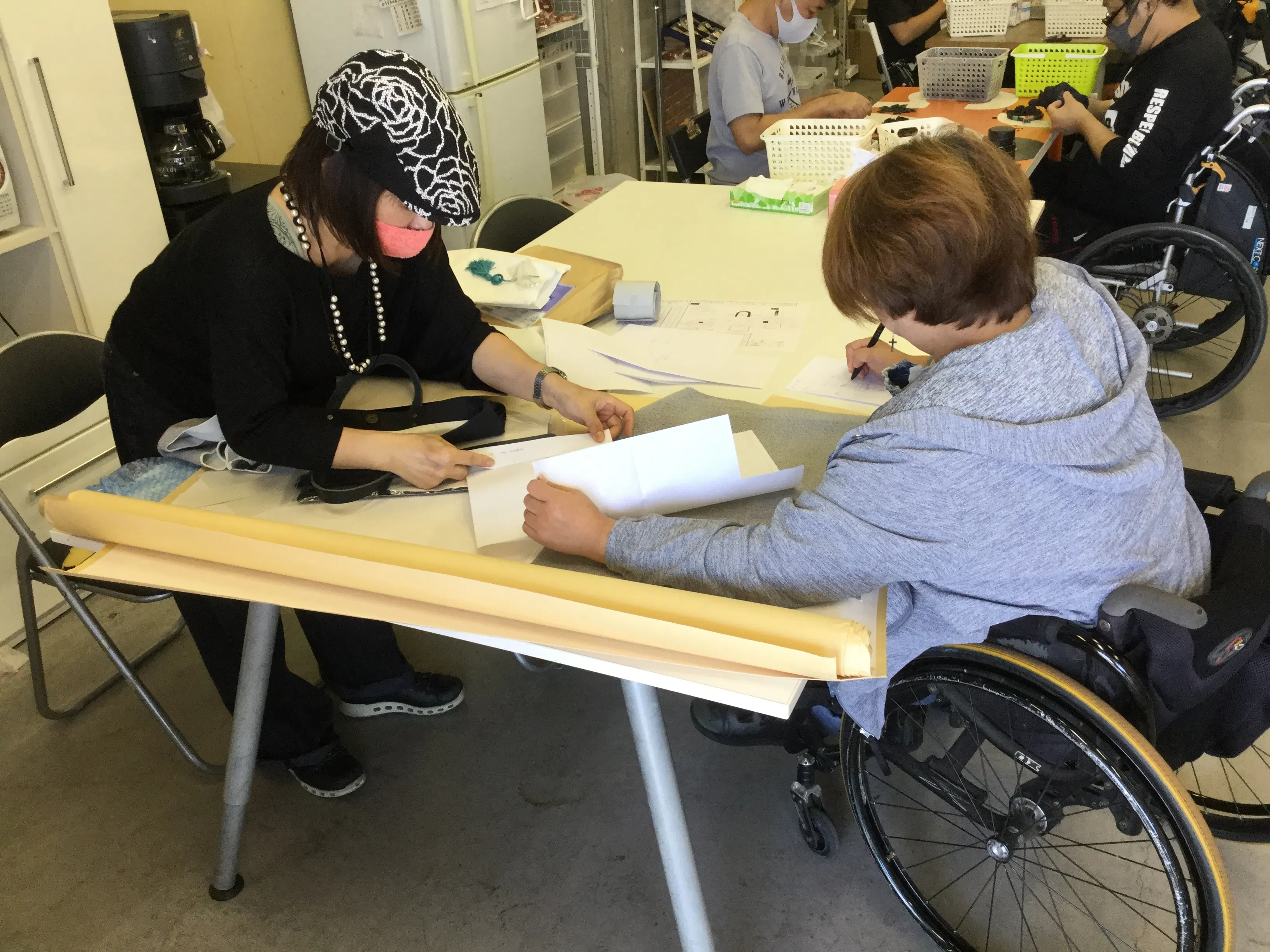 【まとめ縫製は、縫製が得意な車いすユーザーBさんが担当。とにかく縫う仕事が大好きな方です】