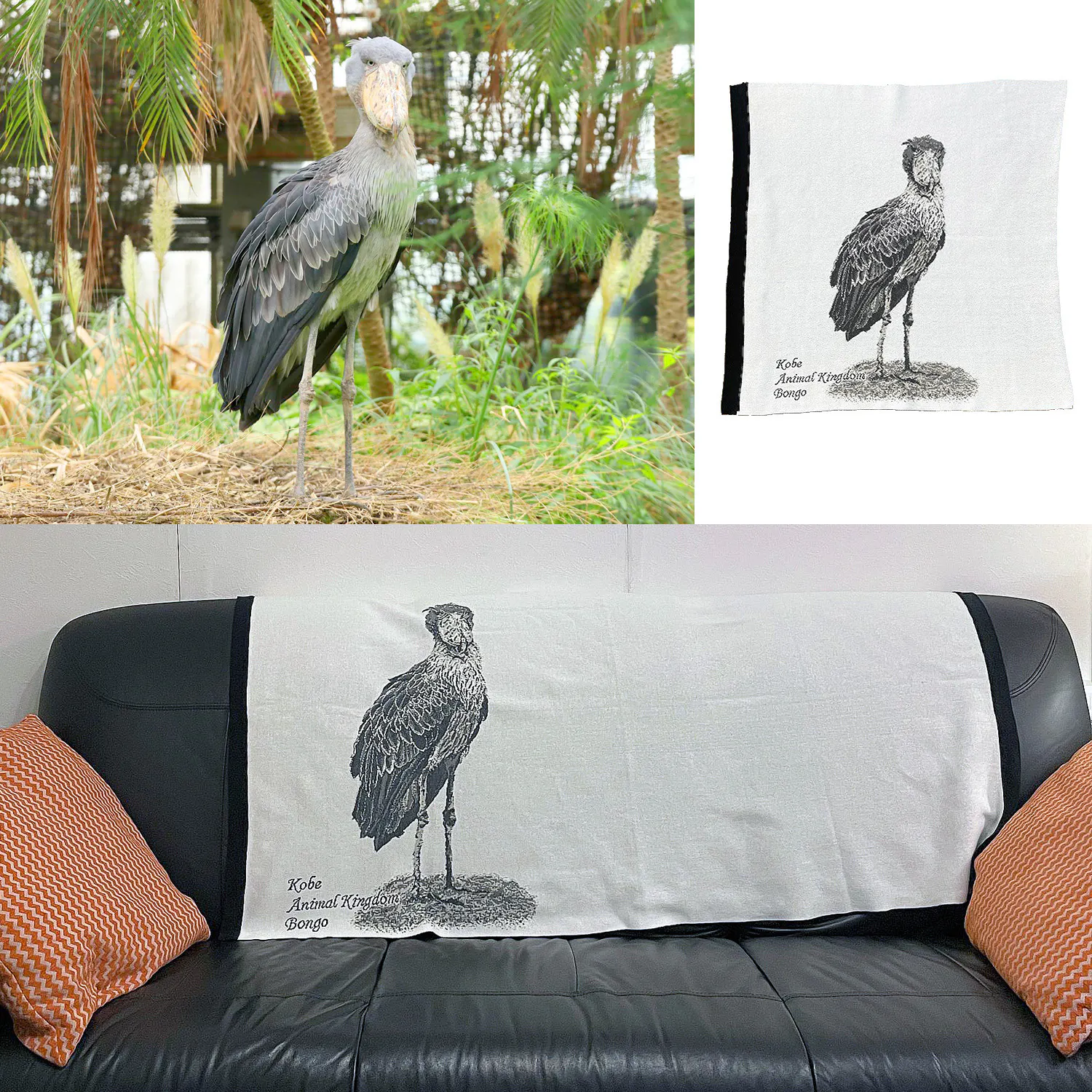 最近では、神戸どうぶつ王国様から、王国の人気者ハシビロコウ「Bongo」くんのマルチラグのオーダーを承りました。
