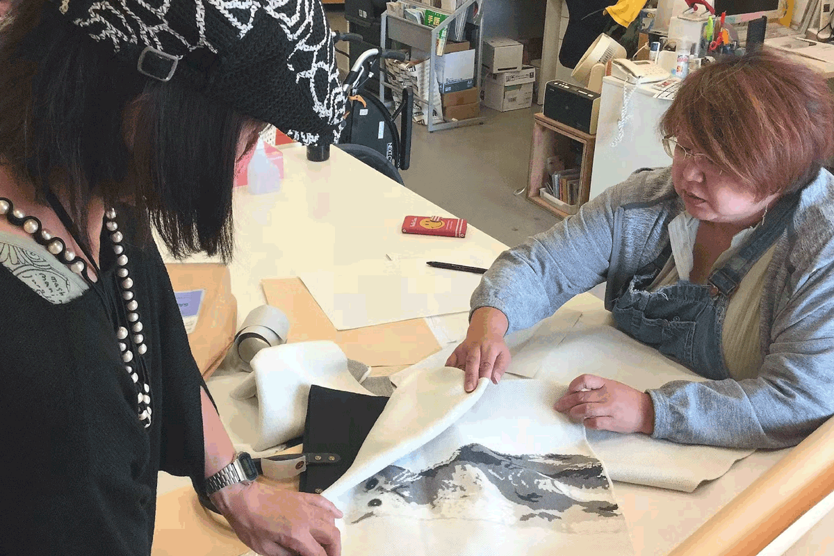【まとめ縫製は、縫製が得意な車いすユーザーBさんが担当。とにかく縫う仕事が大好きな方です】