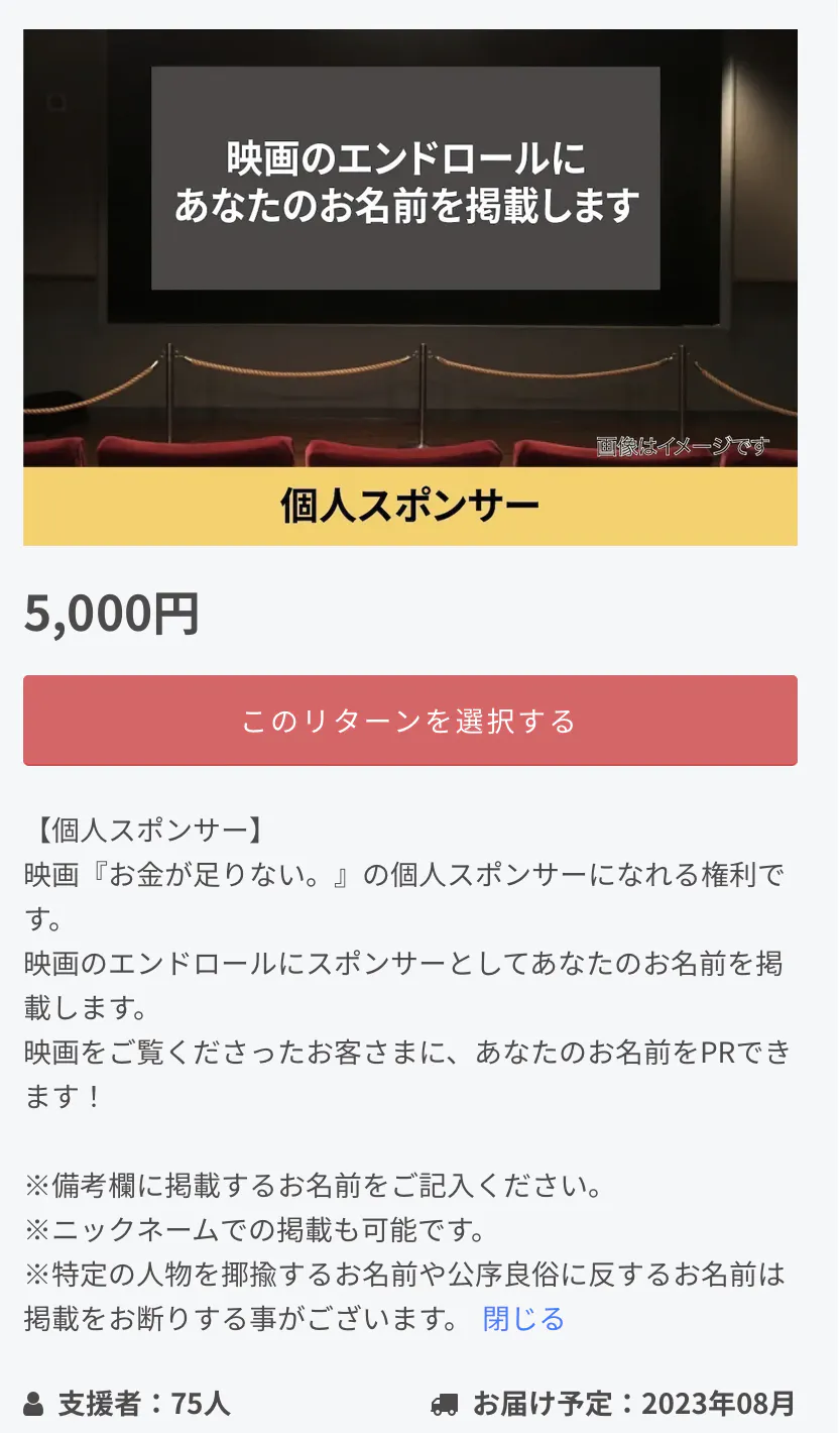 個人スポンサー(映画エンドロールにお名前を掲載)