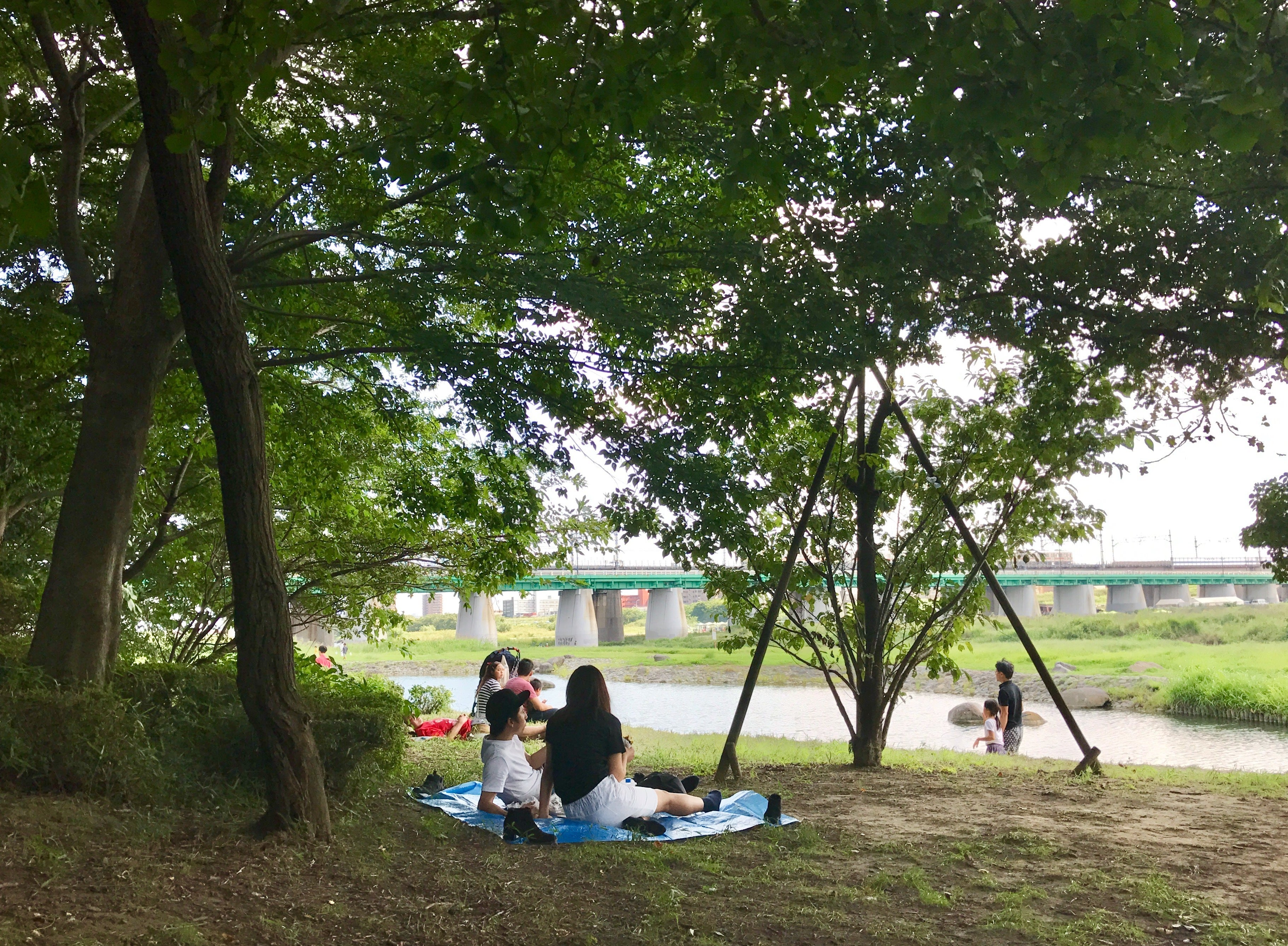 多摩川の水辺は豊かな緑に囲まれた憩いの場所 二子玉川エリアマネジメンツは2015年より、地元の町会だけでも企業だけでも行政だけでもできない「公共空間を活用したまちづくり」に取り組んできました。2021年度からは、二子玉川駅から徒歩5分の場所にある多摩川河川敷内 世田谷区立兵庫島公園の一角で、「Mizube Fun Base(ミズベファンベース)」という広場を開いています。 「水辺×楽しい×拠点」という思いを込めて名付けました。