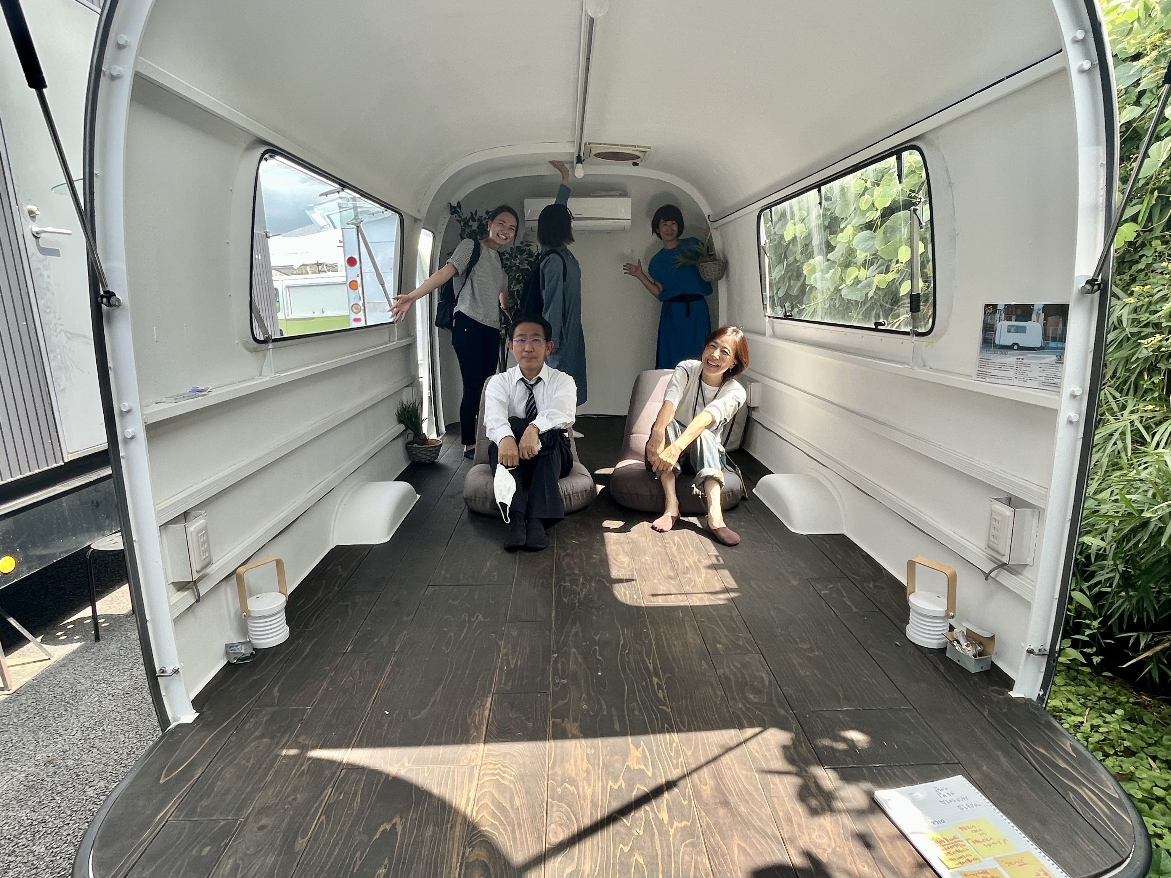 「Roomette Long」というトレーラー型タイニーハウスをレンタルします。車輪がついてるトレーラーボックスは、増水や洪水時に素早く退避できる機動性の高い小さな小屋。イベント期間中の1週間、「Mizube Fun Base」に置いて、「みんなの拠点」としていろいろな使い方を試します。