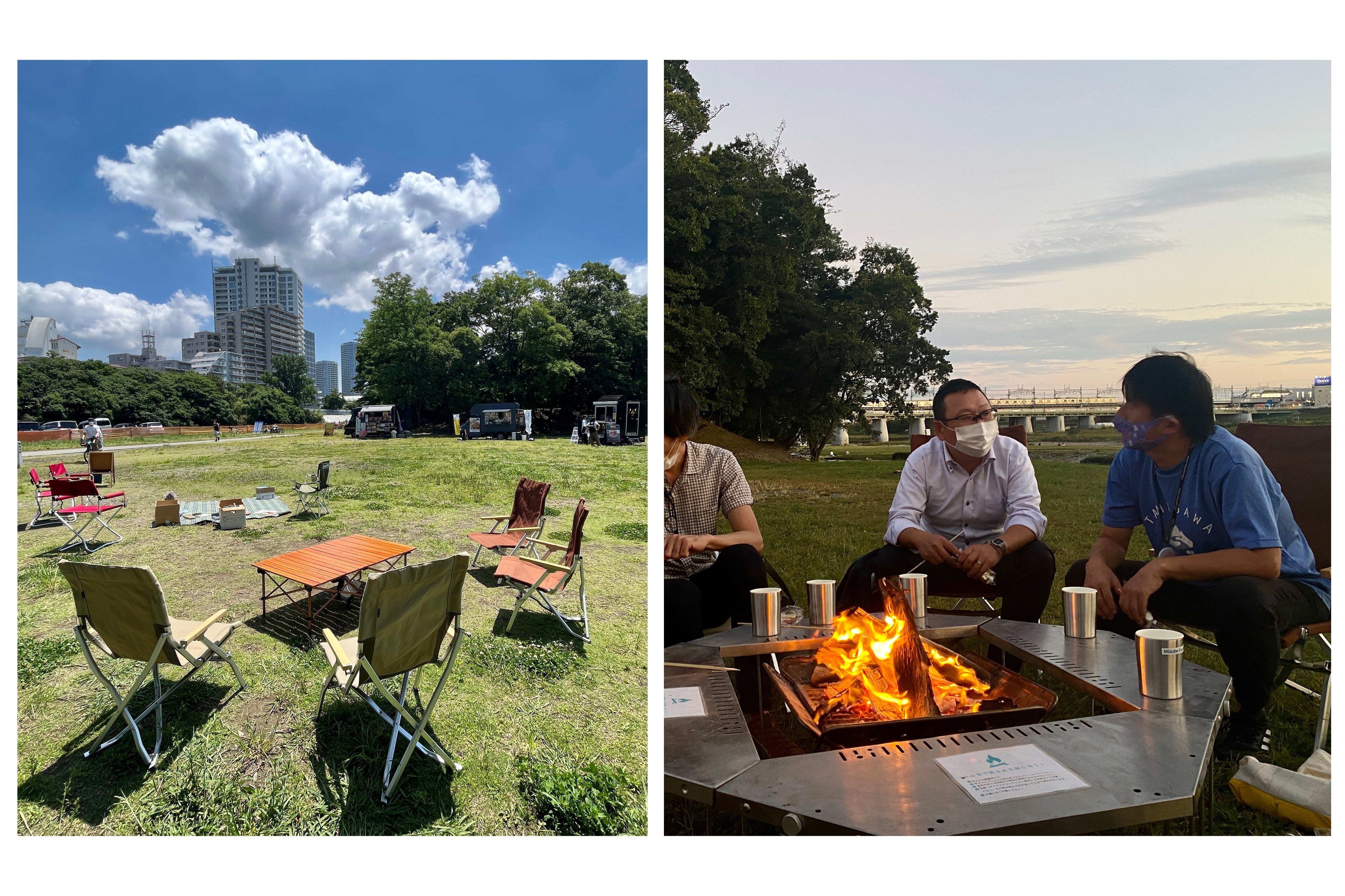 ③水辺で焚火を取り入れた二子玉川ならではの働き方を提案するアウトドアオフィス