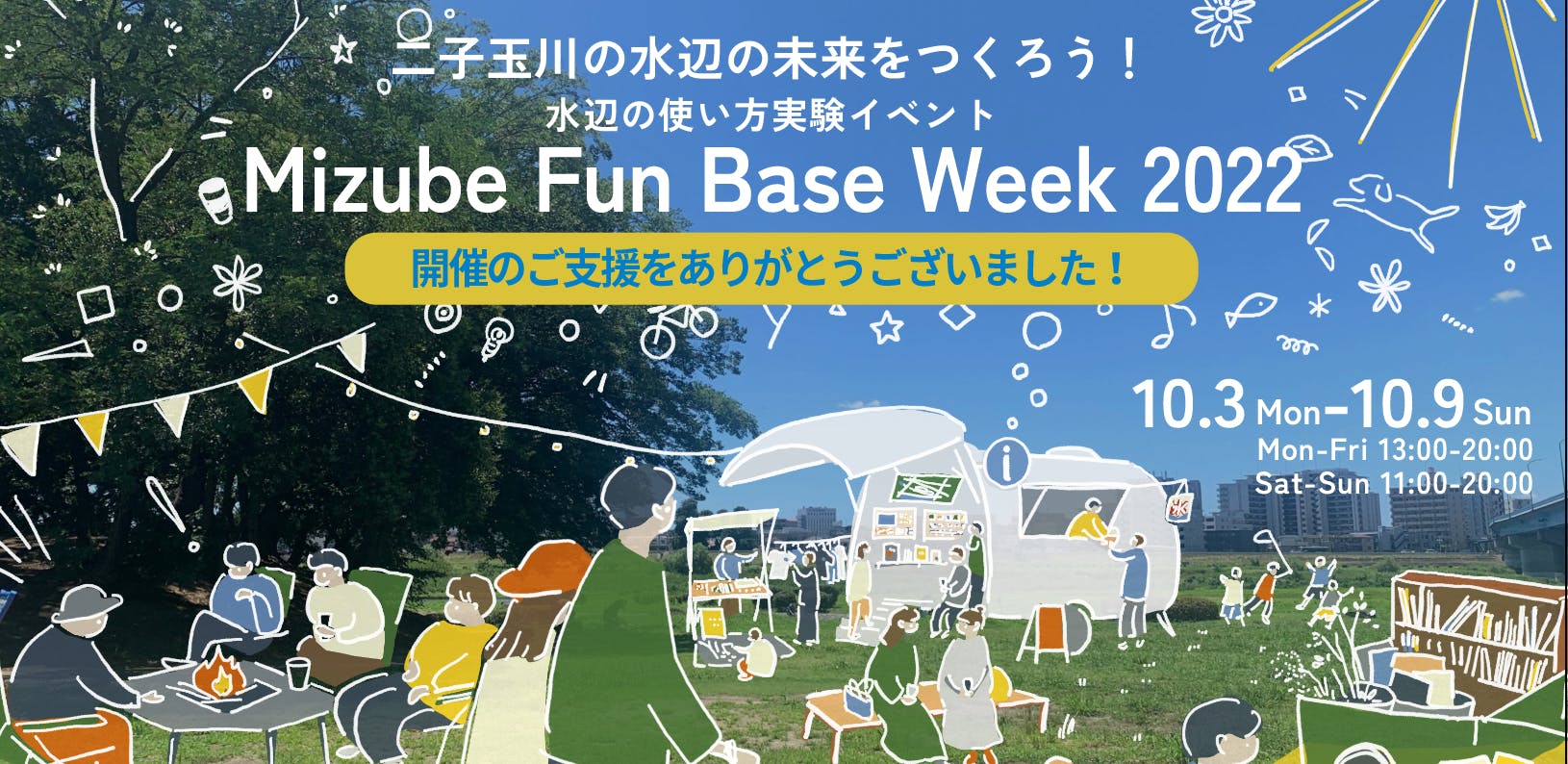 2022/09/29 18:529月7日にスタートした、Mizube Fun Base Week 2022開催資金のクラウドファンディング終了まで、残すところ【あと1日】となりました!これまで11回にわたりMFB-NEWSとして活動報告を投稿してきましたがいかがでしたでしょうか?私たちは、2015年に任意任意団体からスタートし、都市計画や河川の専門知識も有さぬメンバーが集まり、さまざまな経験、時に苦労や失敗を通じて現在地に至るまで、たくさんの思いや物語を紡いできました。これまでお力添えをいただきました方々には、どうかこれからも二子玉川の水辺の新しい未来を生み出す「仲間」あるいは「同志」として、引き続きご一緒いただきたいという気持ちでご案内をさせていただきました。また、二子玉川の街には来るけど水辺にはなじみが無い、多摩川は大好きだけどMizube Fun Baseは知らなかった、あるいは二子玉川エリアマネジメンツというまちづくり団体が活動していることは知らなかった…などなど、まだご支援のプランを決めかねていらっしゃる場合やイベント会場へはお越しになれそうにない、という皆さまへは「Mizube Fun Baseフレンズ」へのお申込みをご提案させてください。このプランは、水辺の未来を一緒につくってくださる方を「MFBフレンズ」とお呼びし、お名前を公式サイトに掲載させていただくものです。「個人(3,000円、ご指定のお名前のみ)」と「法人(5,000円、ご指定のお名前とURLリンク付き)」の2パターンがございますので、詳細はリターンプランをご参照ください 。みんなでつくる"TAMAGAWA"明日9月30日23時59分のクラウドファンディングプロジェクト終了後、翌週10月3日(月)からはいよいよMizube Fun Base Week 2022が開催となります。一人でも多くの方々にご来場いただき、二子玉川の水辺の未来を一緒に考えていただく場となるように準備を進めてまいります。引き続きのご支援とご関心をどうぞよろしくお願い申し上げます。 もっと見る