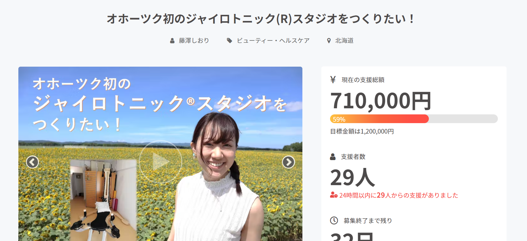 開始から2日でなんと目標額59%、支援額70万円を超えました!