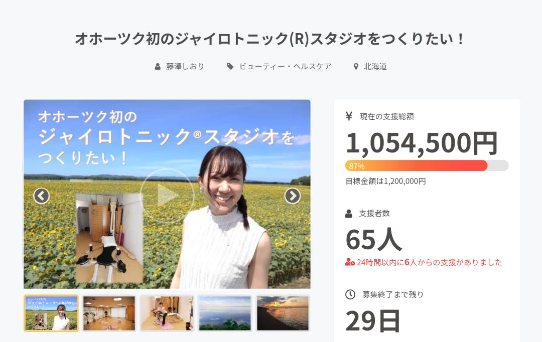 ぜひ、支援してくださった方は半年以内に北見にいらして頂いて、実際にジャイロトニック®の良さを知っていただきたい!!と本気で思っています
