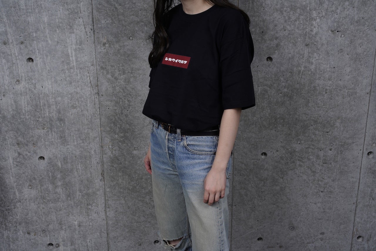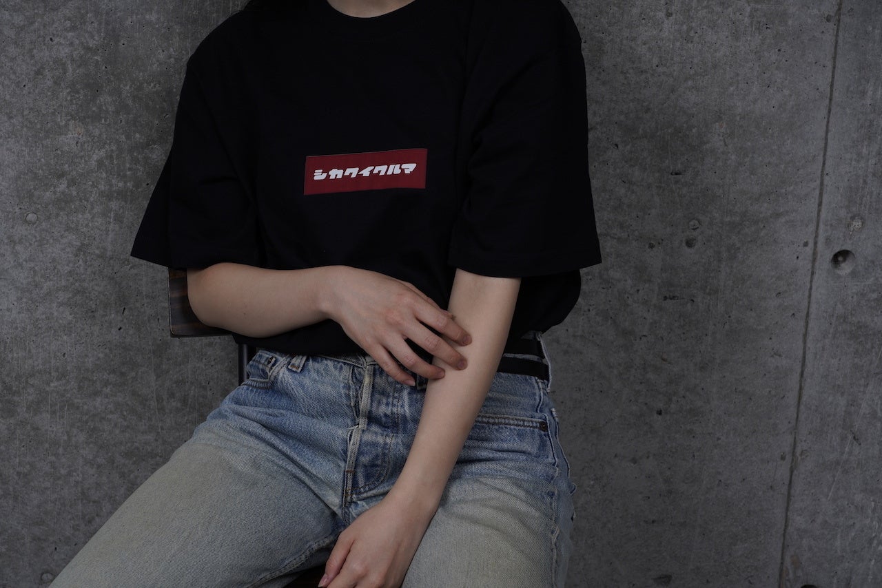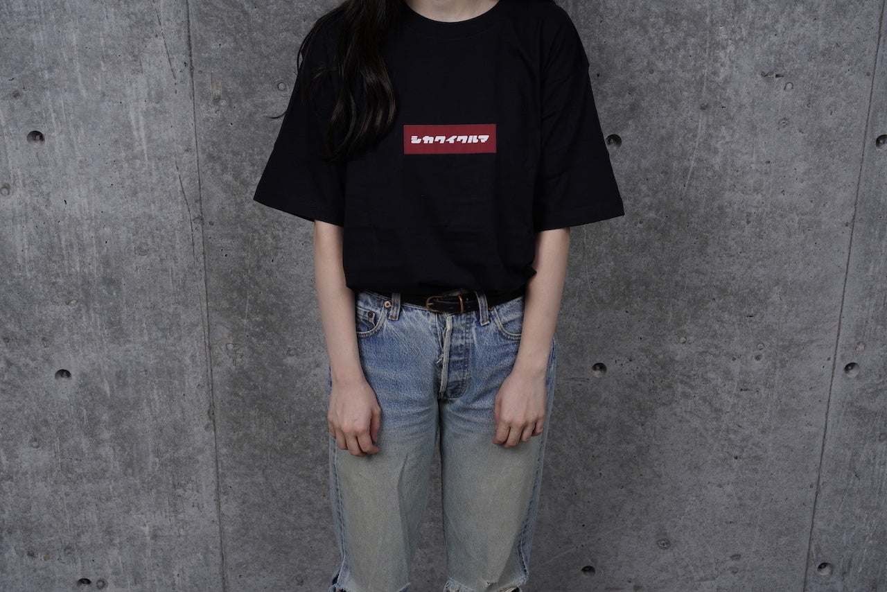 『シカクイクルマ』のシンプルなロゴが入ったTシャツのブラックver.です。