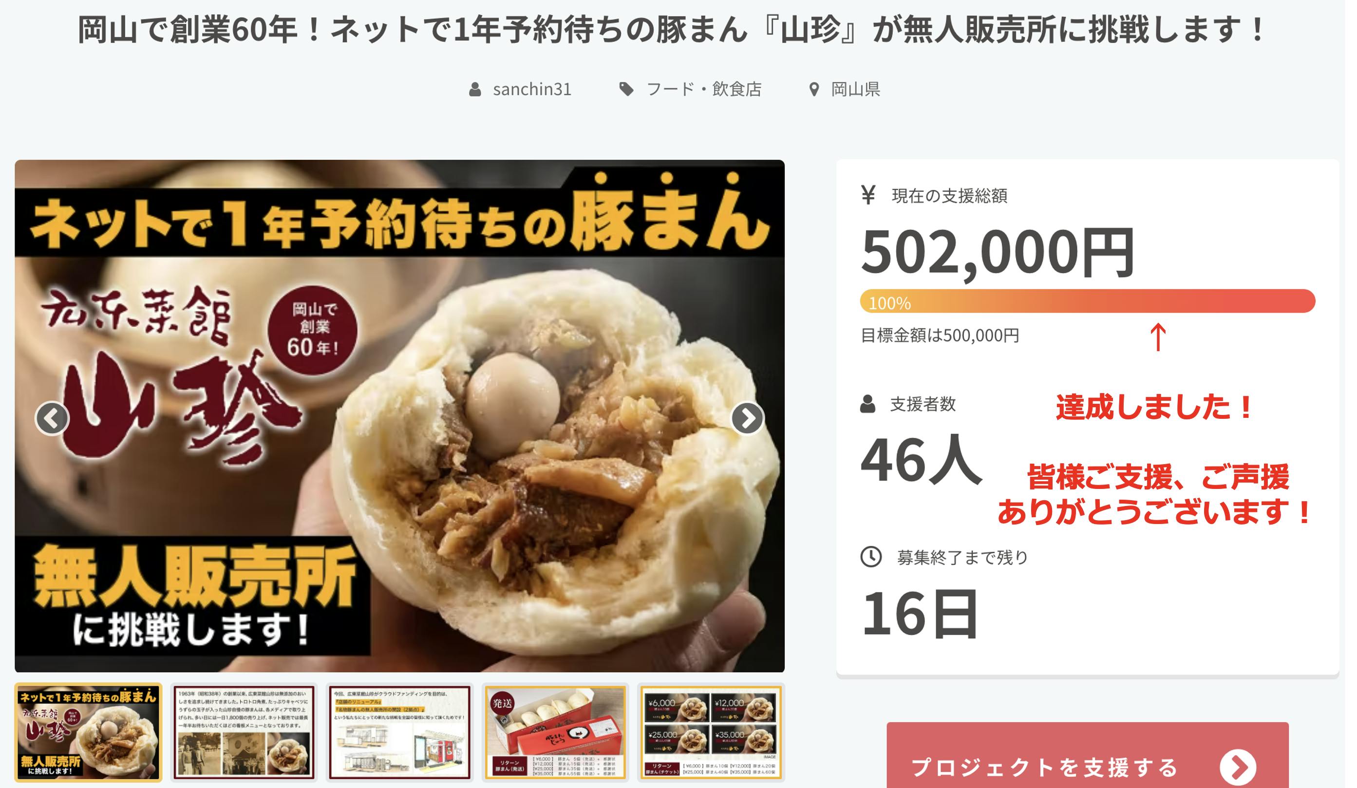 大変嬉しいことに、まずは50万円の目標を達成できました!