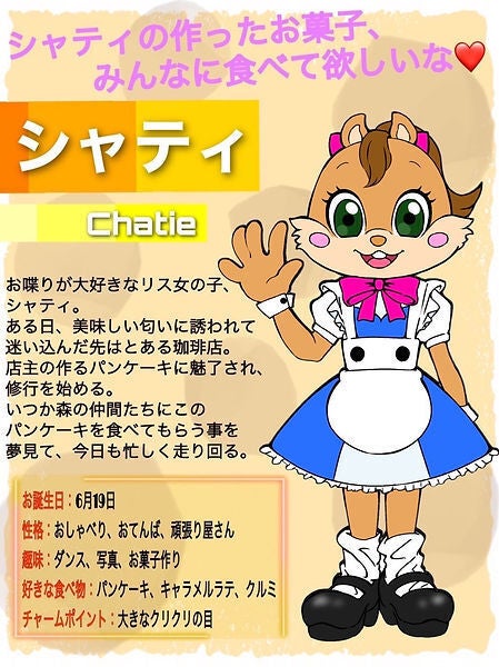 そして、その非日常への架け橋となるのが、マスコットキャラクターとして誕生した 『珈琲店で働くリスの女の子”シャティ”』です。