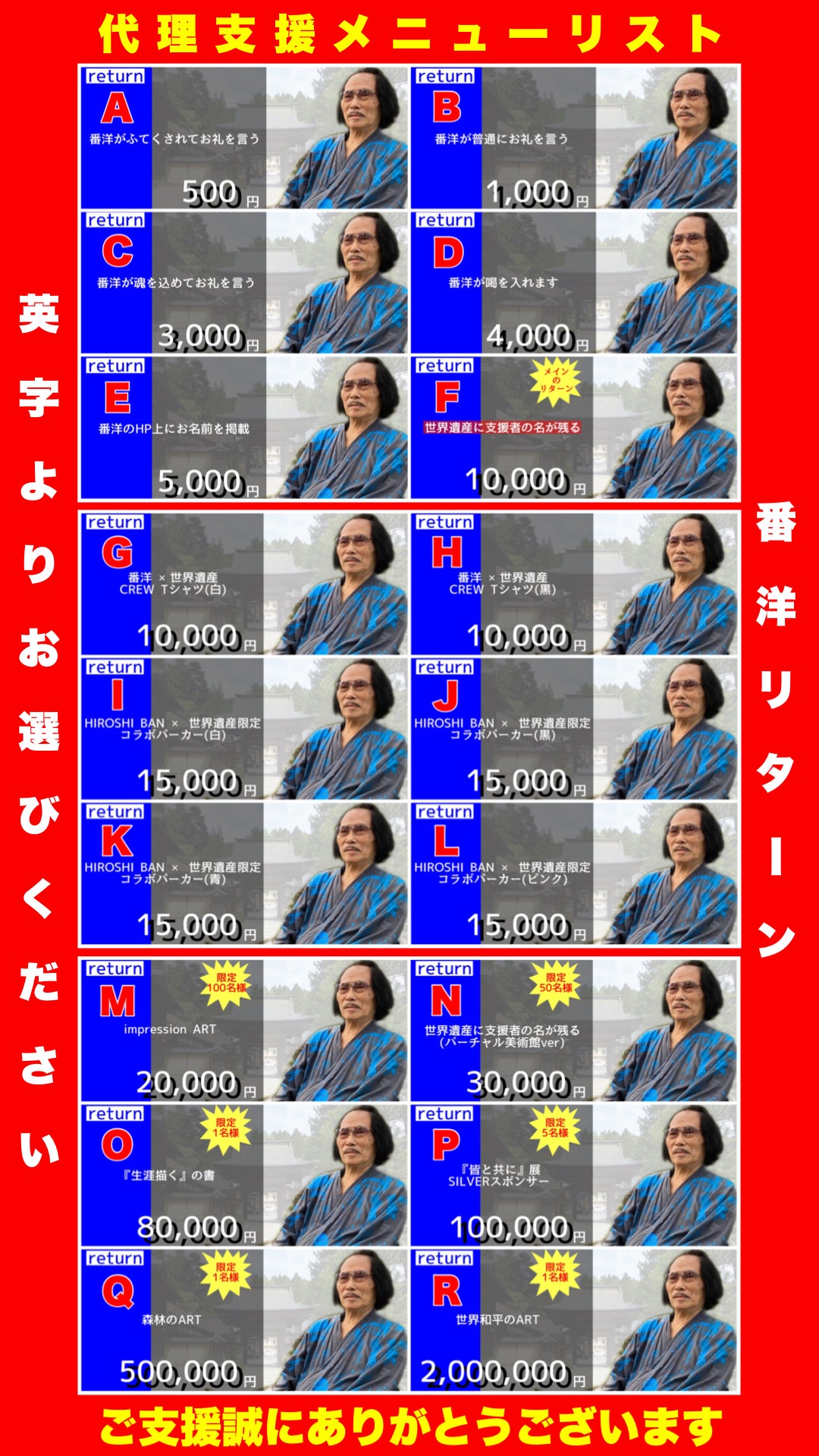 ※ご入金が確認でき次第、番洋運営チームが代理でクラウドファンディングの決済手続きをさせていただきます。