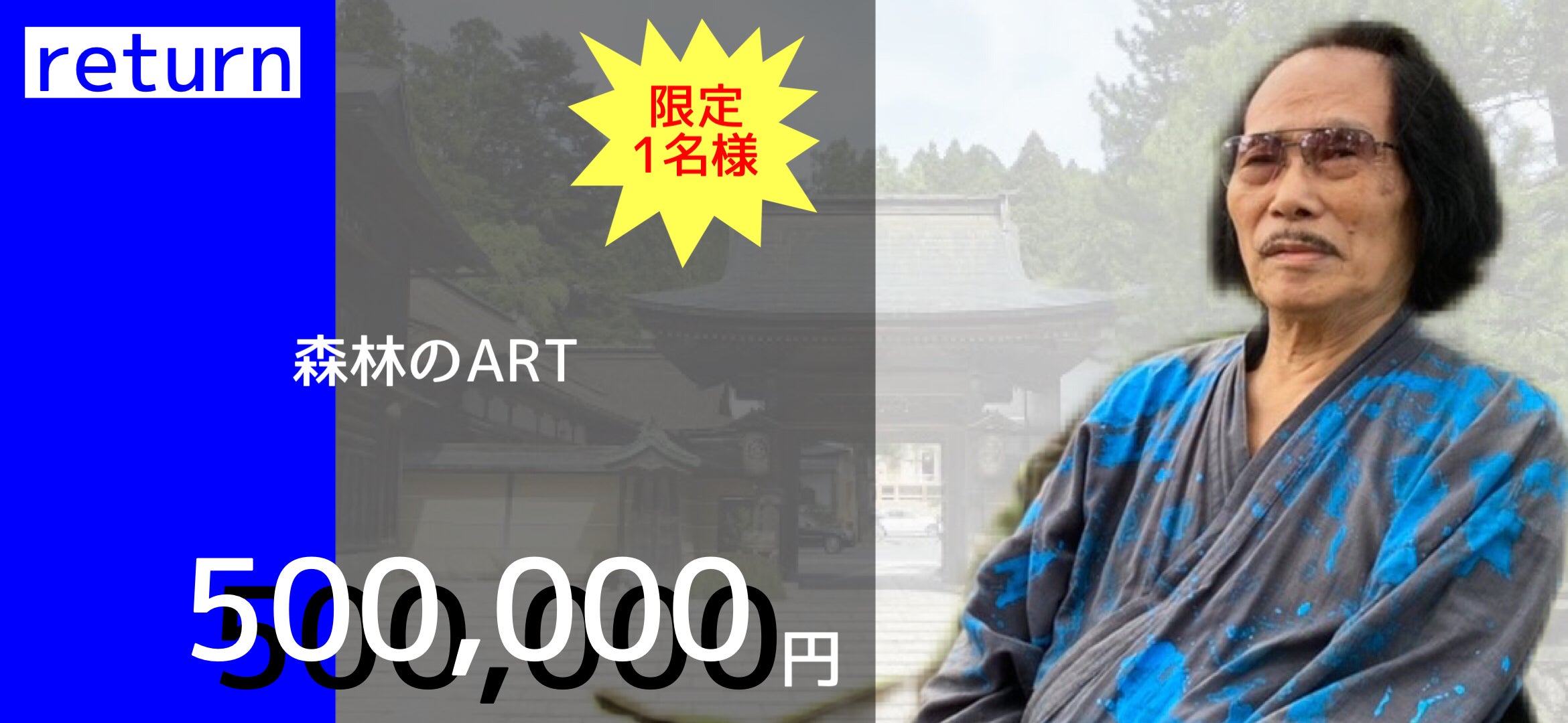 この度、父が金屏風にアートを描き世界遺産である高野山無量光院に寄贈致します。支援者様には金屏風の裏に名前を描くリターンをご用意させて頂きました。父から子へ孫へ、そして何世代にも渡り後世に名が残ります。