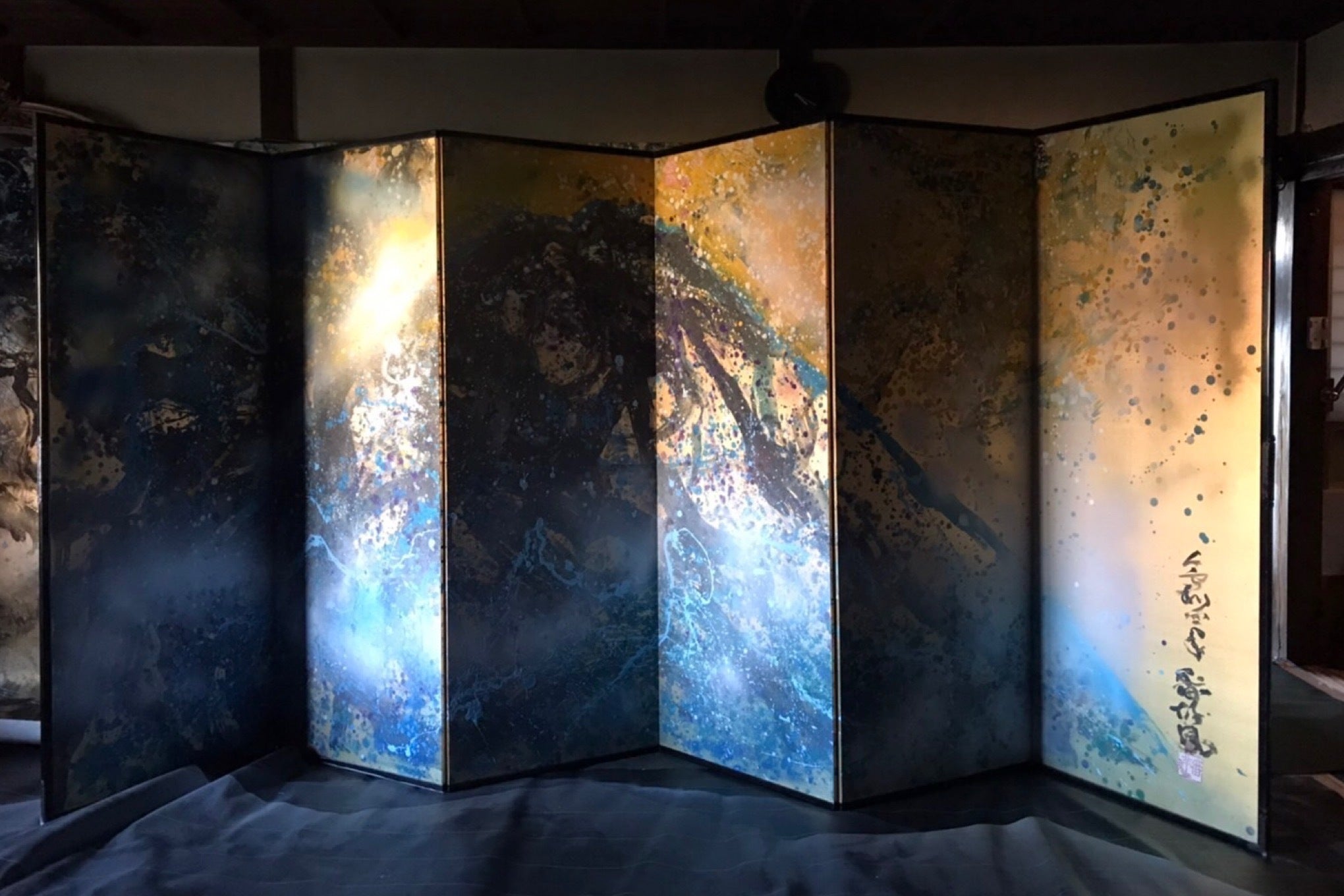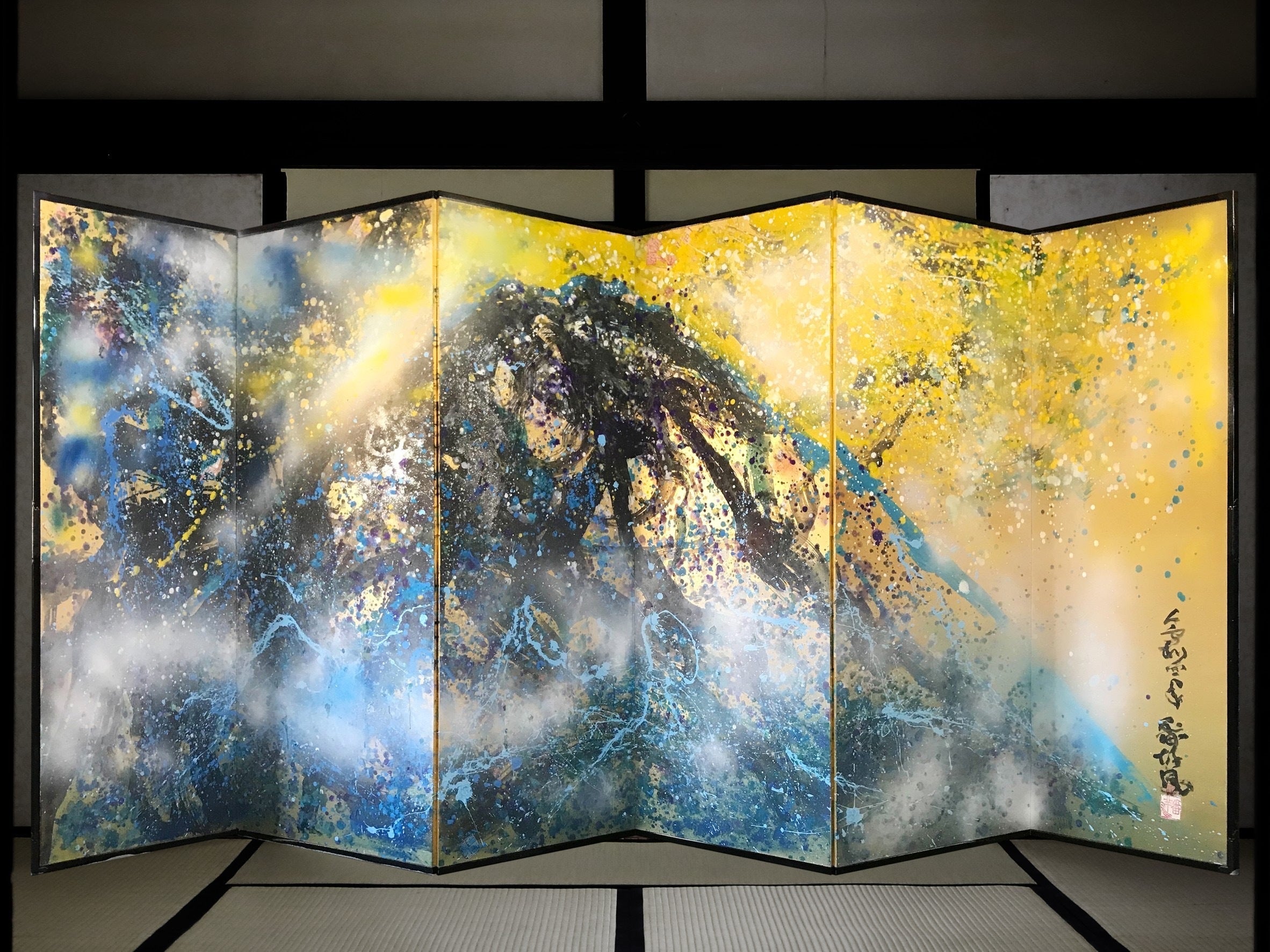 番洋が描いた金屏風アートを世界遺産の高野山無量光院に寄贈(きぞう)します。支援者様にはその金屏風アートの裏にお名前を描きます。