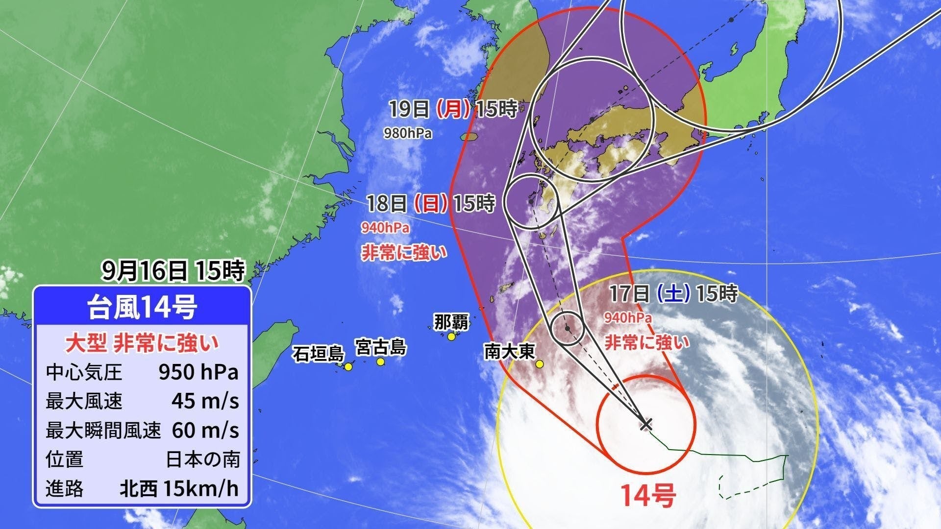 おはようございます!大阪は今雨は降っていませんが、台風14号が関西方面に近づいています。皆様台風には十分に気をつけ対策してください!