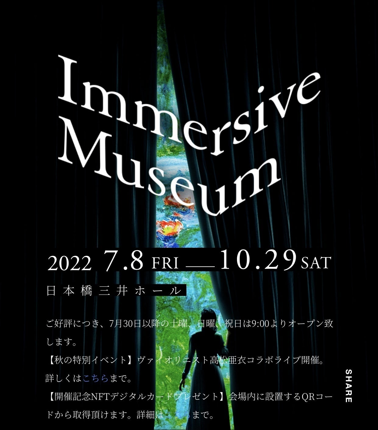 読み方はイマーシブミュージアムです。中々幻想的で素敵な空間で直ぐにビビッときました( ͡° ͜ʖ ͡°)