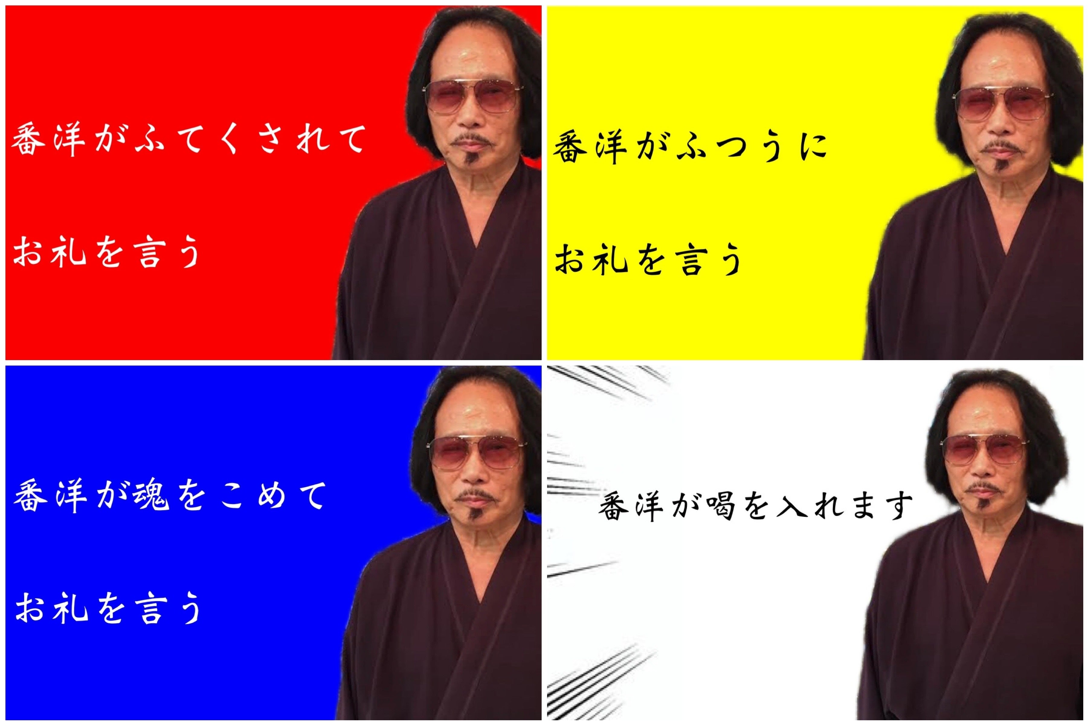 30秒CM動画制作と並行して大人気リターンの"番洋がお礼を言う"4パターンの動画も撮影しました。