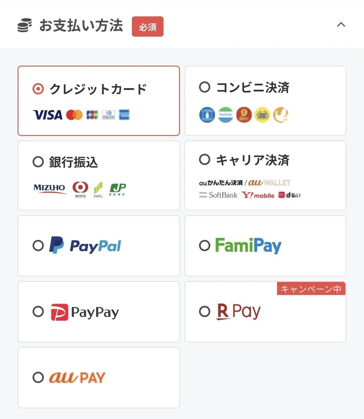 あまり知っている方少ないかもですが、クレジットカードや振り込み以外にQR決済やキャリア決済、コンビニ決済も出来るんです。