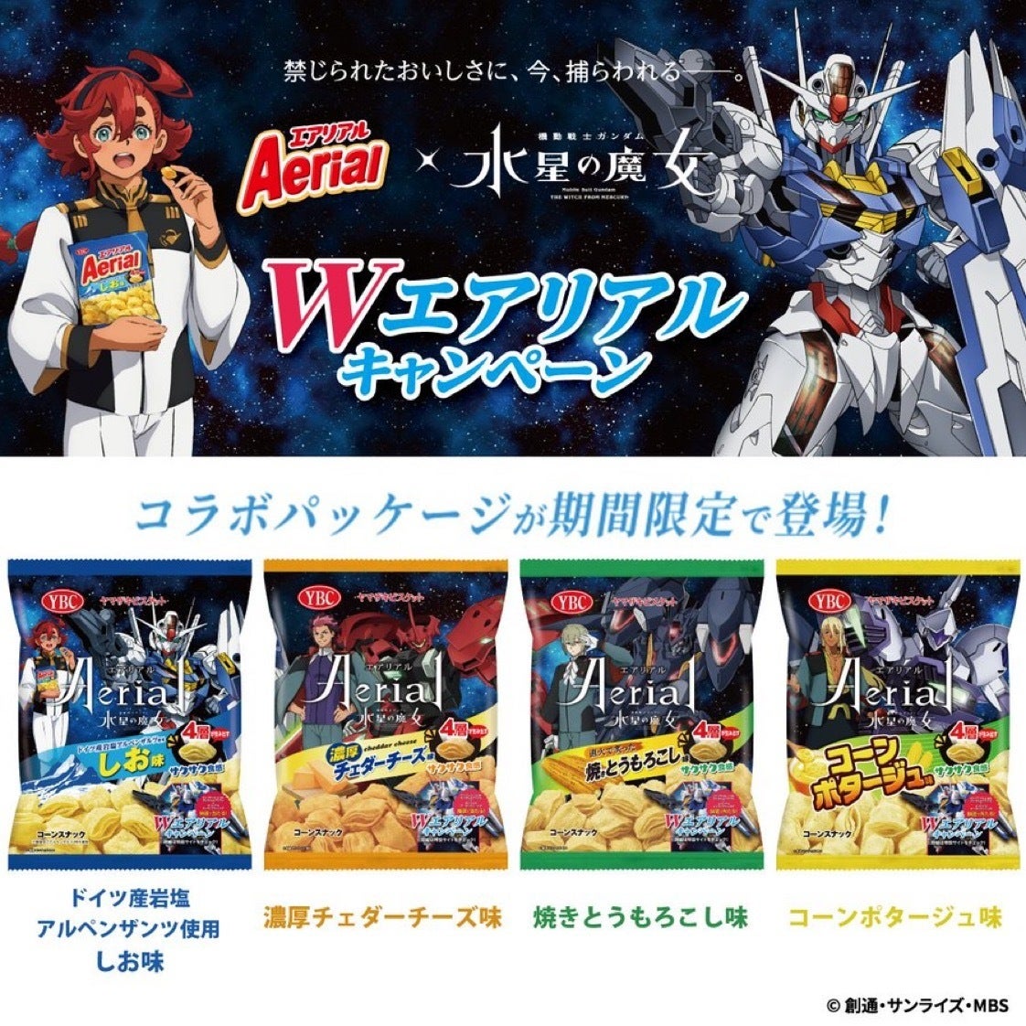 本日10月16日(日)に第3話が放送されたテレビアニメ『機動戦士ガンダム 水星の魔女』と、ヤマザキビスケットのお菓子“エアリアル”とのコラボパッケージが発売されることが明らかとなった。