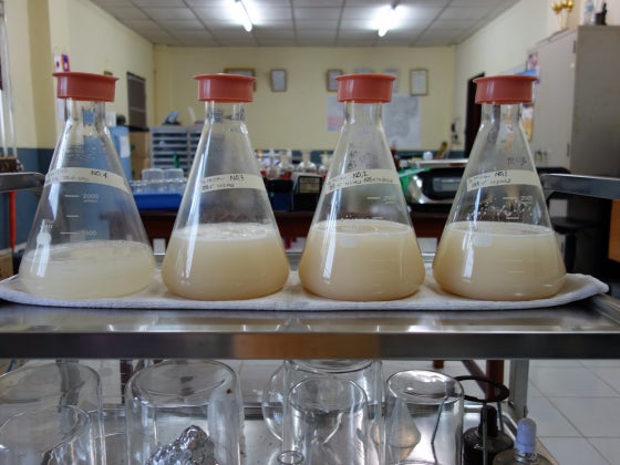 昨年夏に続き今年もラオスのラム酒メーカーのラオディ社に酒造りのアドバイスを頂きながらココナッツワインづくりの製造実験を行いました。