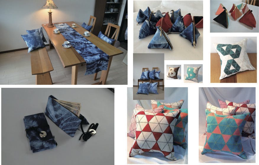 ●くるみボタン●三角ポケット●テトラポーチ●藍染絞り作業