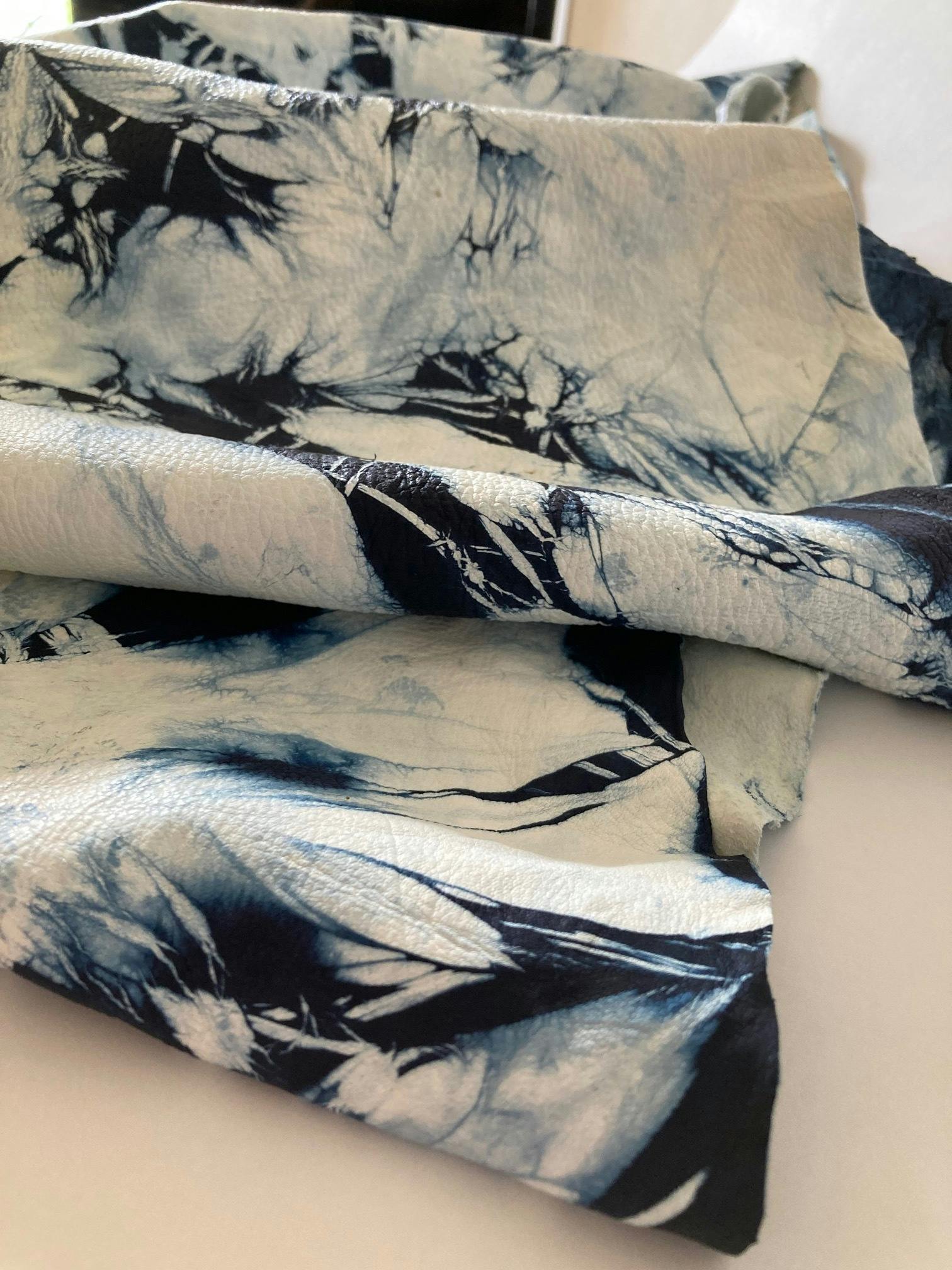 ・鹿革藍染絞りの原革/A3サイズ大(420mm×297mm)