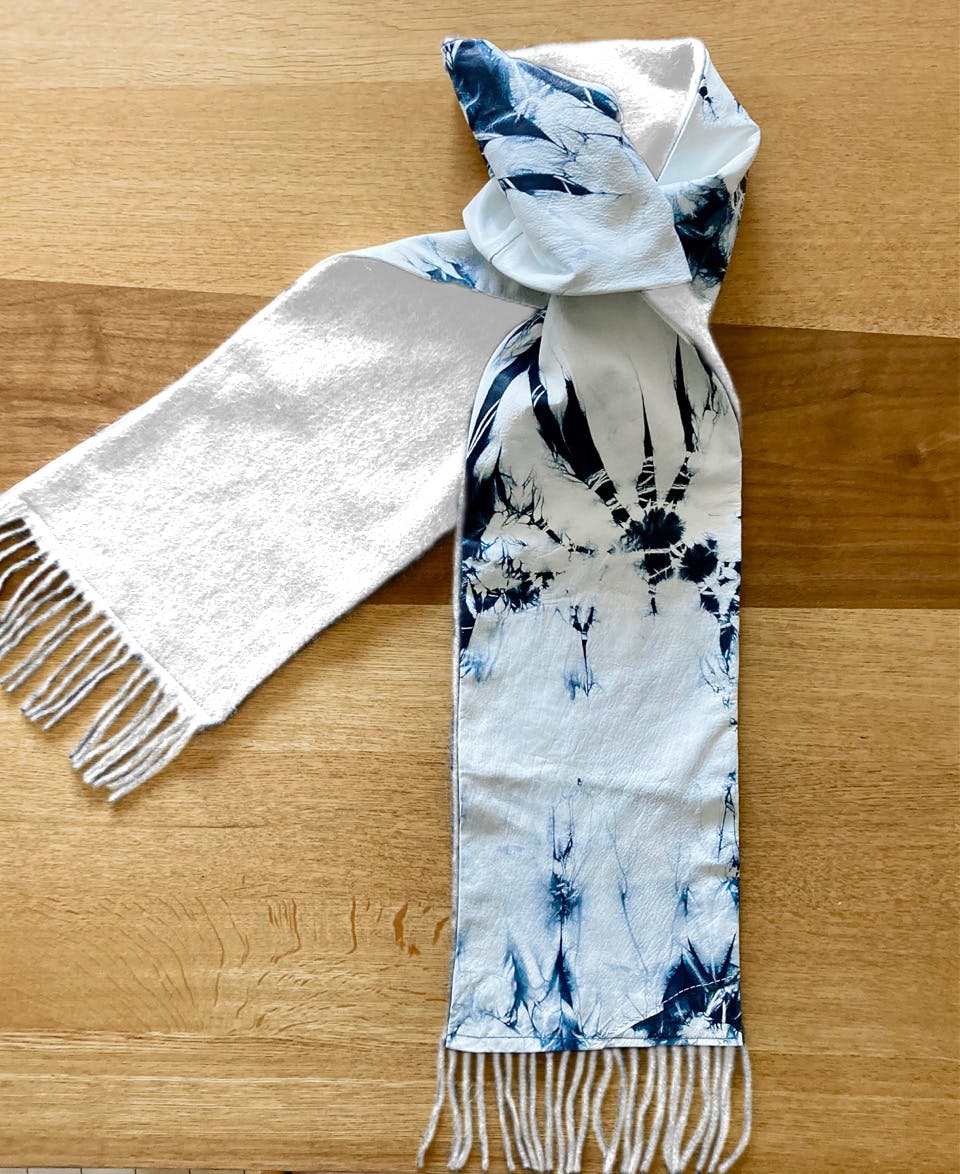 (1.)カシミヤ ホワイト+鹿革藍染絞り