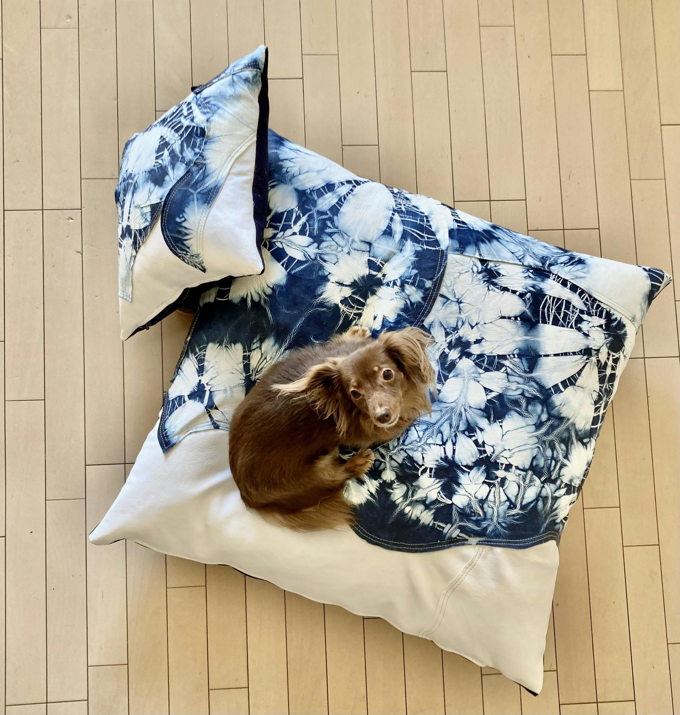 ③鹿革藍染革絞りのクッション(鹿革藍染絞り2mm厚)