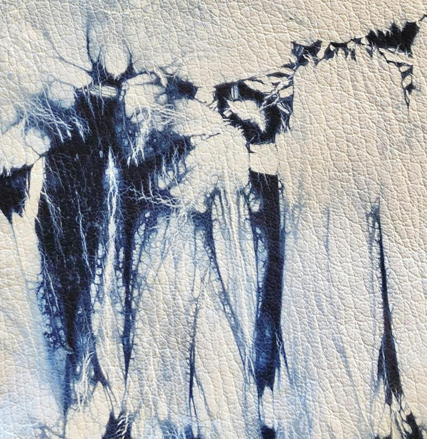 今回は白無垢と藍のコントラストで敢えて鋭さのある文様を表現しています。これは柔らかな鹿革だからこそ表現できる細かな文様となります。