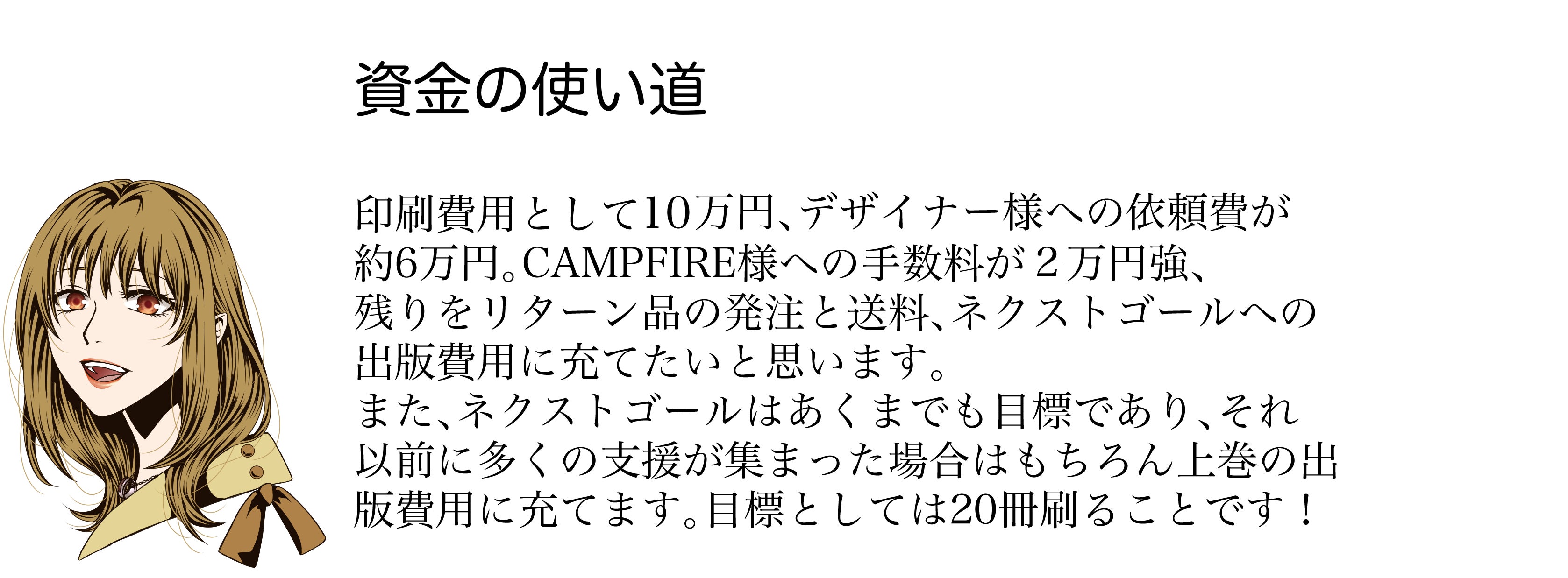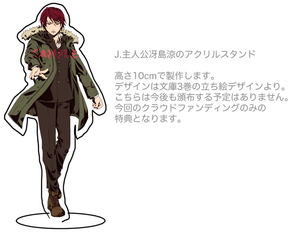 こちらはネクストゴールの下巻を見越したリターンとなりますが、一人でもご支援者様が現れた場合下巻の出版に踏み切ります。リターン品のお届けとしましては、先に上巻をお届け後、活動報告で下巻の進捗をお伝えさせていただいた上で刷り上がり次第下巻のお届けとなります。