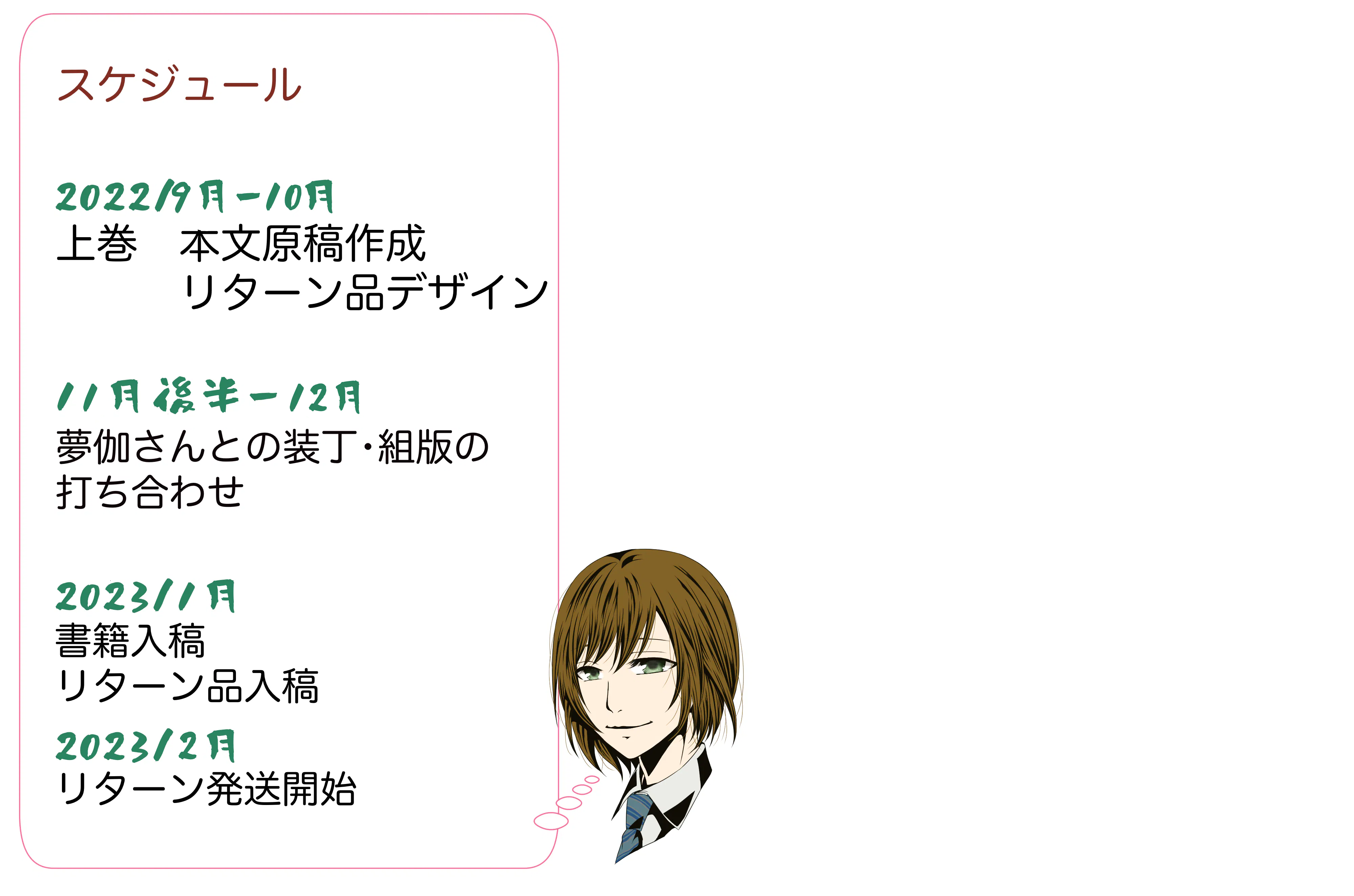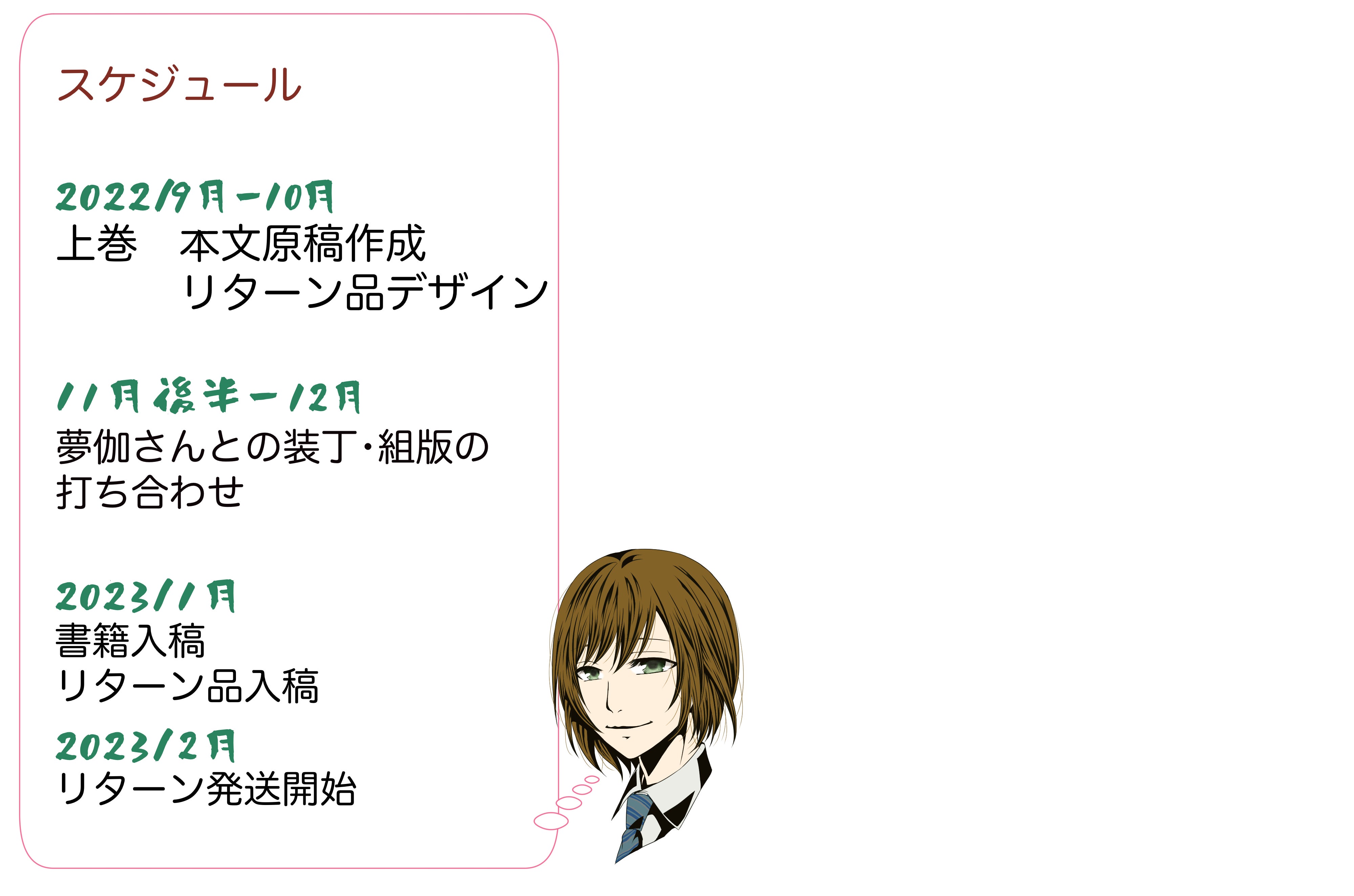 巻末に挟み込む「ご支援者様リスト」にお名前を記載させていただきます!本名がNGの場合はtwitterIDなどでも可。載せたいお名前をお知らせください!