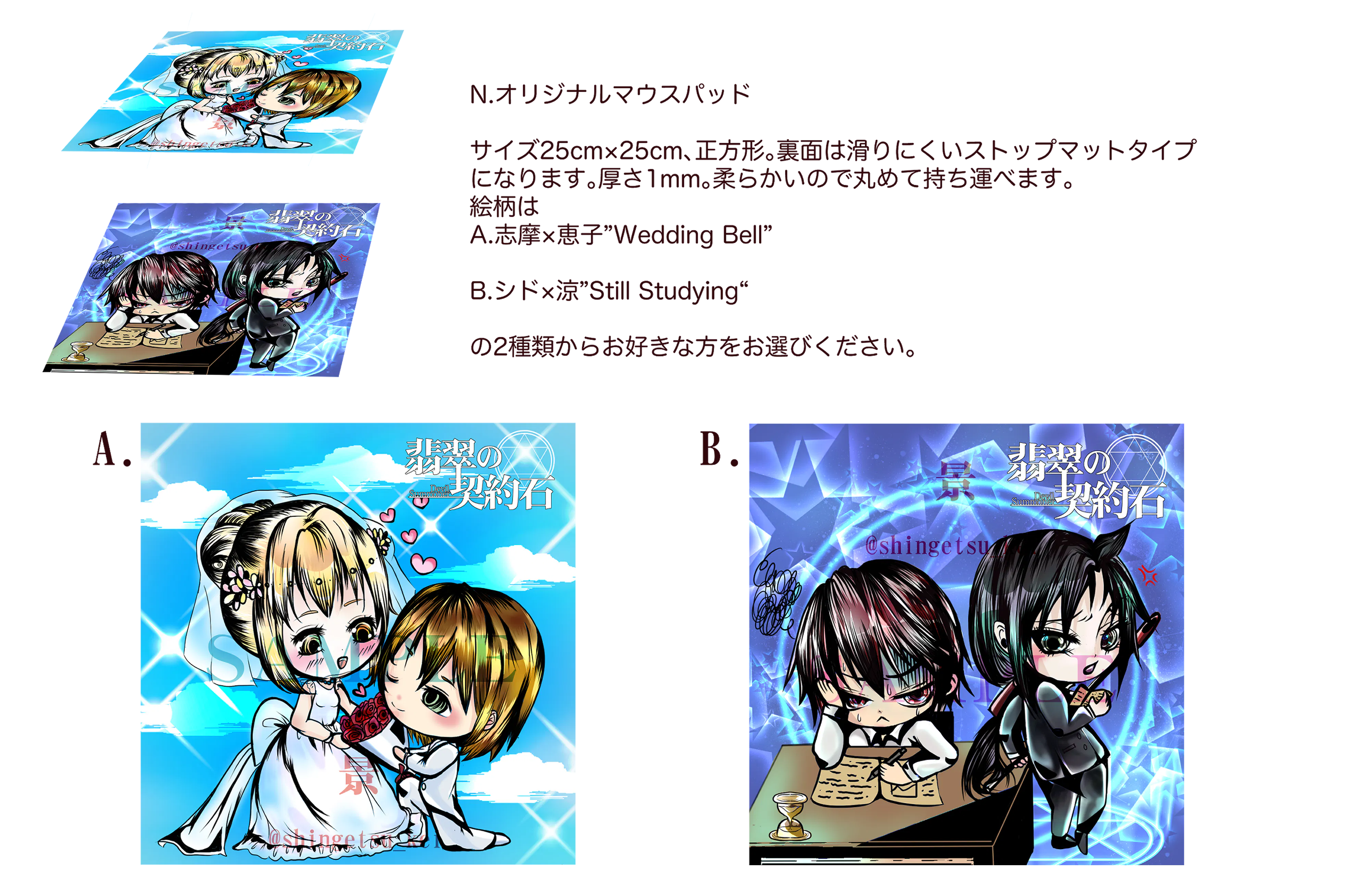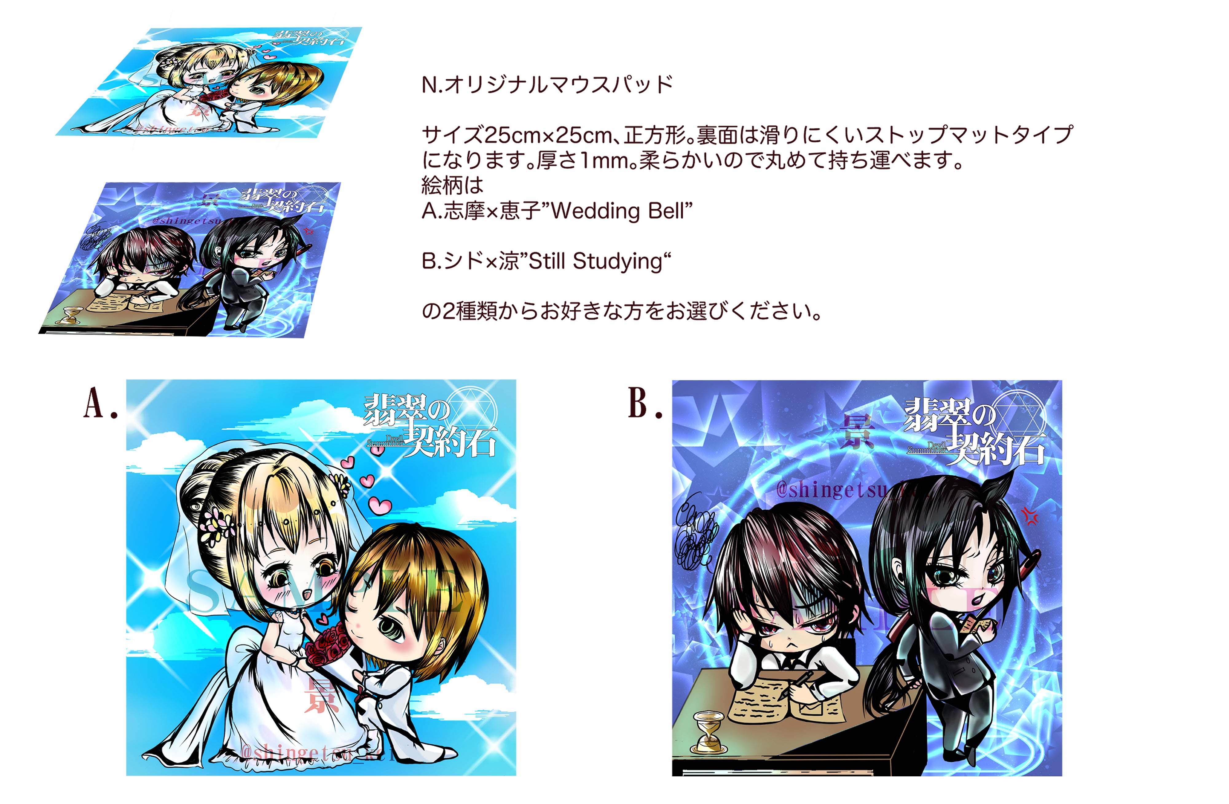 上巻挿絵ポストカードより1枚お選びください。作者直筆のお礼メッセージとサインを表面(イラストの裏側)に記入させていただきます!ご希望によってはキャラからのメッセージも可能ですよ!ご指定くださいね!