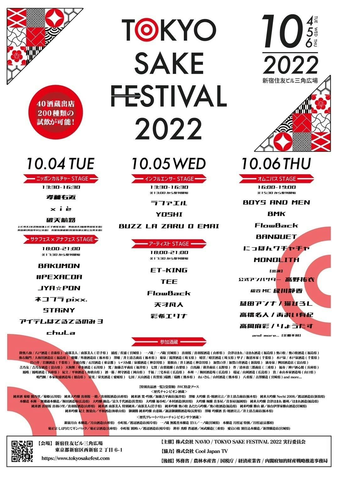 2022年10月4日~6日は「TOKYO SAKE FESTIVAL2022」の開催日です!!