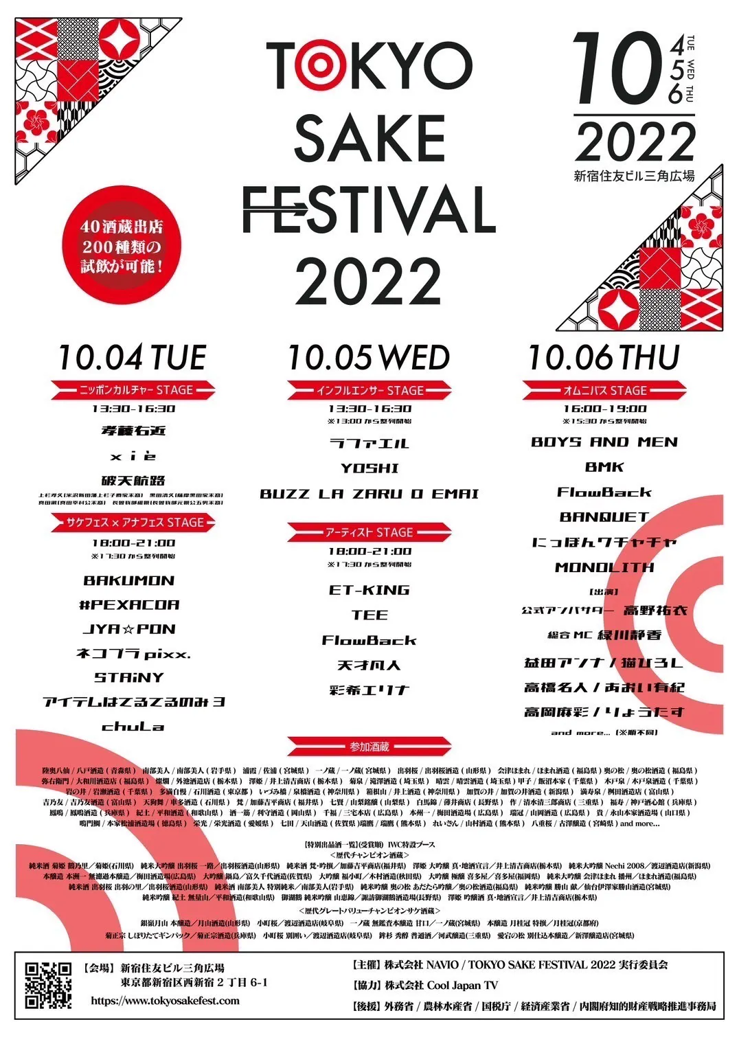 上は青森から、下は宮崎までたくさんの酒造様がTOKYO SAKE FESTIVAL2022で皆様の舌を堪能させます!