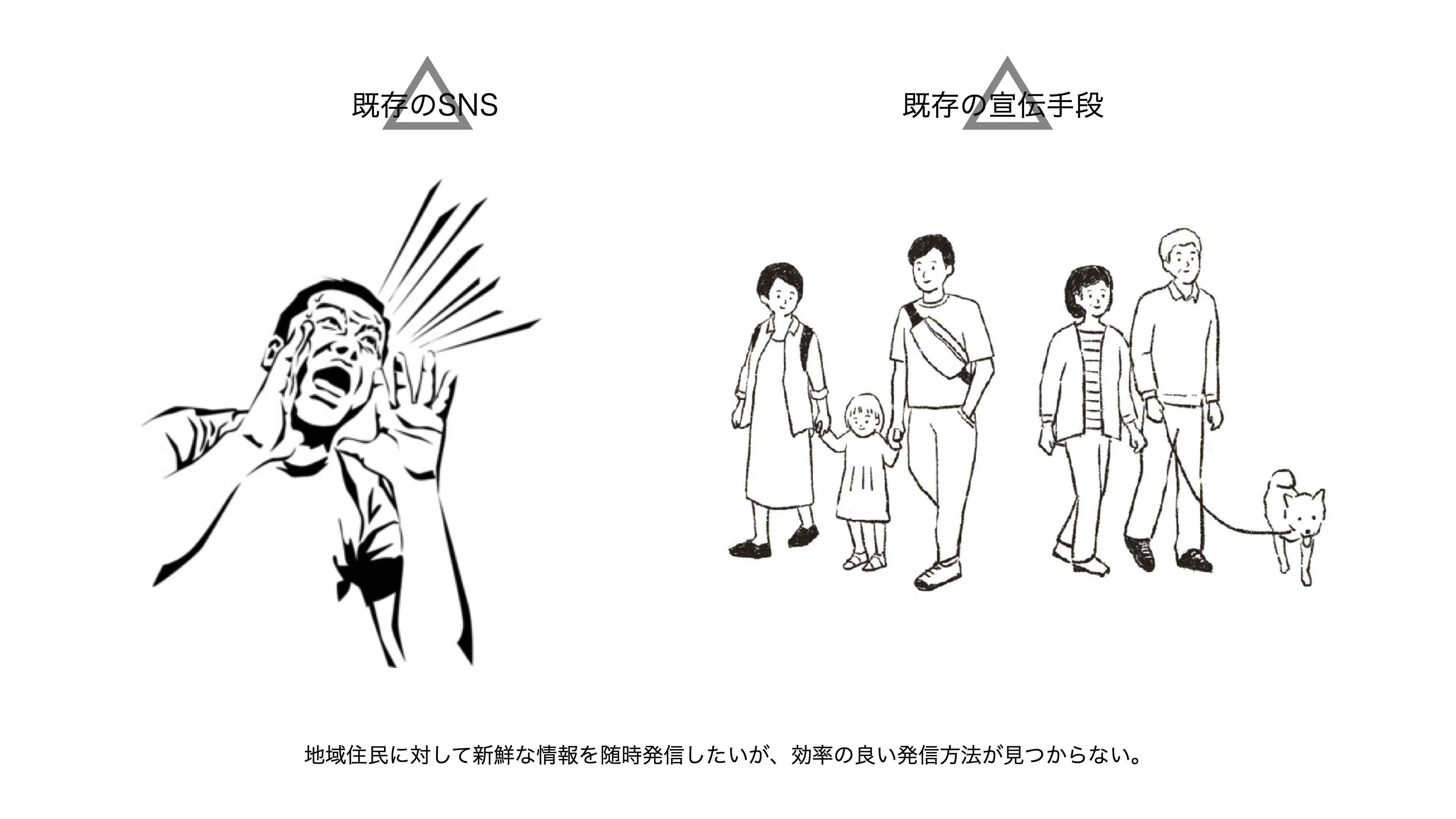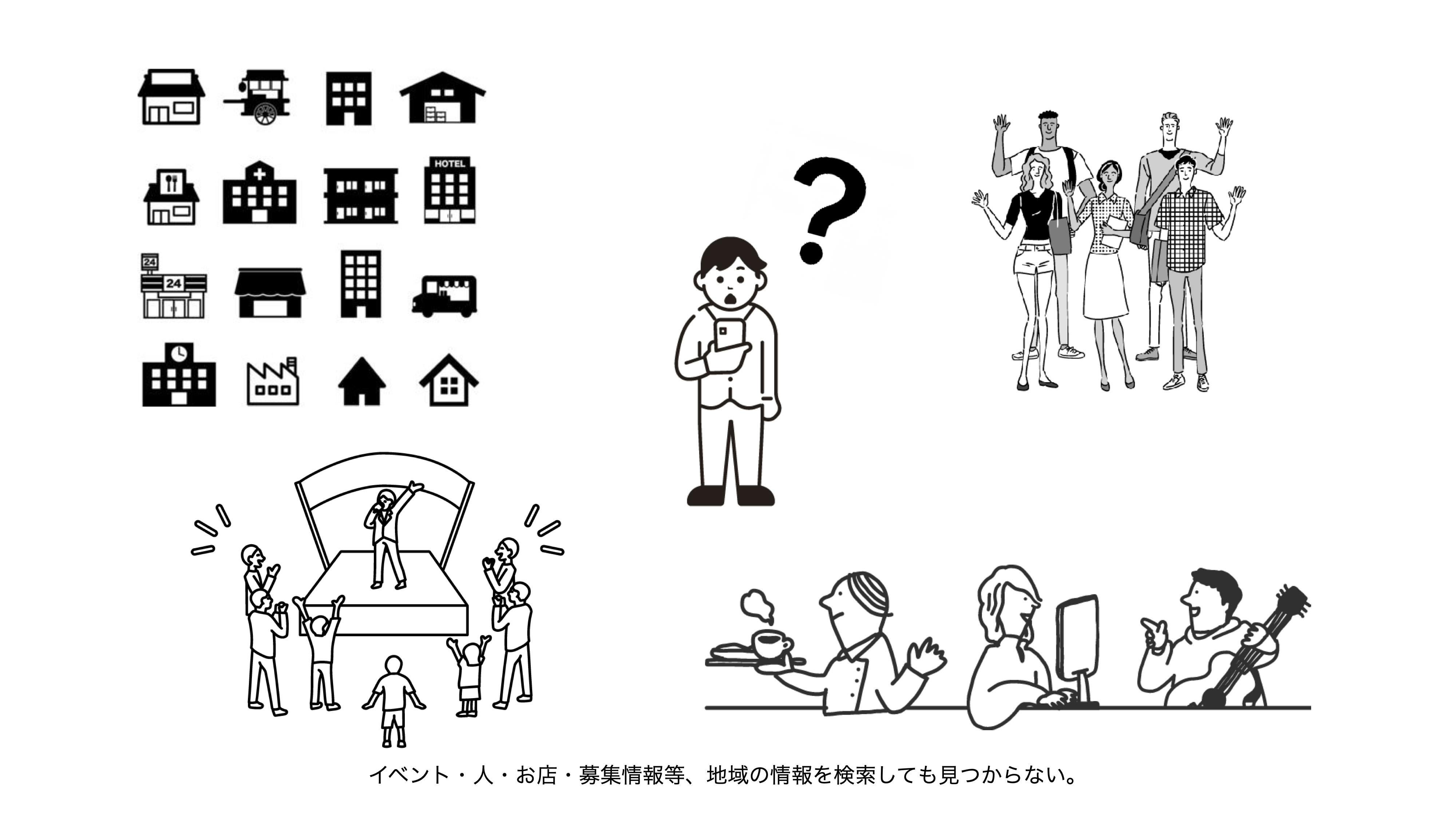 私がこのプロジェクトを立ち上げたきっかけは、私自身が飯田市へUターンした際に情報格差という問題を身近に感じたからです。この情報格差というのは、世代によって取得できる情報に限りがあることです。飯田市では情報を取得及び発信することが難しいことが現状です。その理由は世代によって情報取得の手段が異なるからです。若い世代(〜40代)の主な取得方法はSNSやウェブサイトなどのオンラインによる方法、50代以上の方は回覧板やチラシのようなオフラインの方法が一般的です。そのため、世代によって取得できる情報に限りがあります。反対に、発信者が多世代に情報を届けたい場合はターゲットによって手段(SNSや広報誌等)を分ける必要があり、現状では複数の対象に対して情報を確実に届けられる媒体が少なく、時間や手間、費用がかかります。特にオンラインによる発信を苦手と感じる事業者では客離れや人材不足が課題にあり、常に新鮮な情報を届けられるオンラインによる発信と新たな顧客の開拓に対しての解決策を必要としています。
