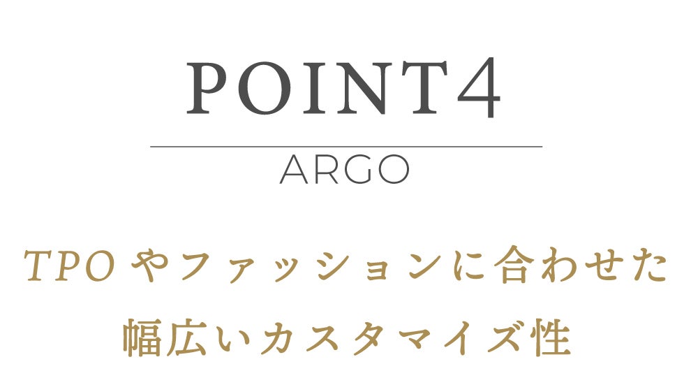 スタイリッシュでモダンな品格を兼ね備えたシンプル美。ARGOは、ビジネス、カジュアルどちらも格上げします。