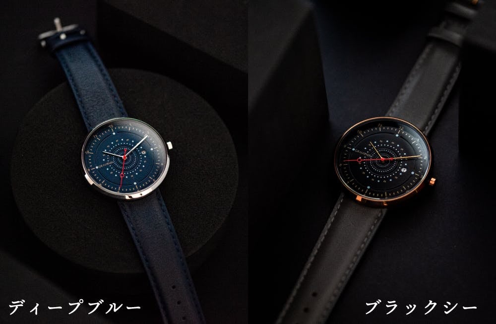 「星の航海士」に敬意を表し、「ディープブルー」、「ブラックシー」と名付けた2つの文字盤。