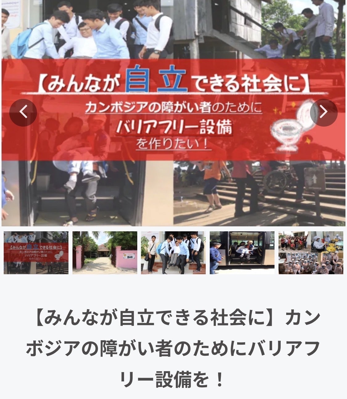 【力を貸してください!】このプロジェクトは、カンボジアの障がい者施設のためにバリアフリートイレを設置することを目的としたものです。プロジェクト終了まで時間がありませんが、未だ目標金額に到達することができていません。プロジェクトを成功させるさせるために、みなさんの力が必要です。このプロジェクトを成功させたい私たちの思いを知っていただきたいです。実は今回のプロジェクトを行うにあたって、現地で話を聞くのではなく、日本とカンボジアをリモートで繋いで現地の方にヒアリングを行いました。本音を言えば、現地へ行ってカンボジアの雰囲気を肌で感じ、障がい者の方の生活をこの目で見て、支援をしたかった。しかし、コロナウイルスの影響で私たちが現地に行くことは叶いませんでした。そのため、リモートでプロジェクトを進めることに大きな不安がありました。上手く話を聞き出せないのではないか、現地の人の気持ちを理解できないのではないか、良い支援ができないのではないかなど、、、しかし、一回目のヒアリングでその不安は無くなりました。障がい者施設PPCILの代表サミスさんの明るい人柄に触れ、障がい者だけでなく全員が自立し人生を楽しむという考えに刺激を受けました。しかし、その考えを持っていても環境のせいで不自由を被ることがあることもわかりました。環境を少しでも変化させることによって、遠く離れた場所にいても何か力になりたいと感じました。しがない大学生の小さな一つのプロジェクトに過ぎませんが、今回のこのプロジェクトを行うことで、またそれを成功させることで、遠くの国の障がい者の方の未来の光になることができます。しかし、私たちだけの力ではプロジェクトを成功させることはできません。プロジェクトを成功させるためにみなさんの力が必要です。共感していただけた方、ご協力をお願いします。