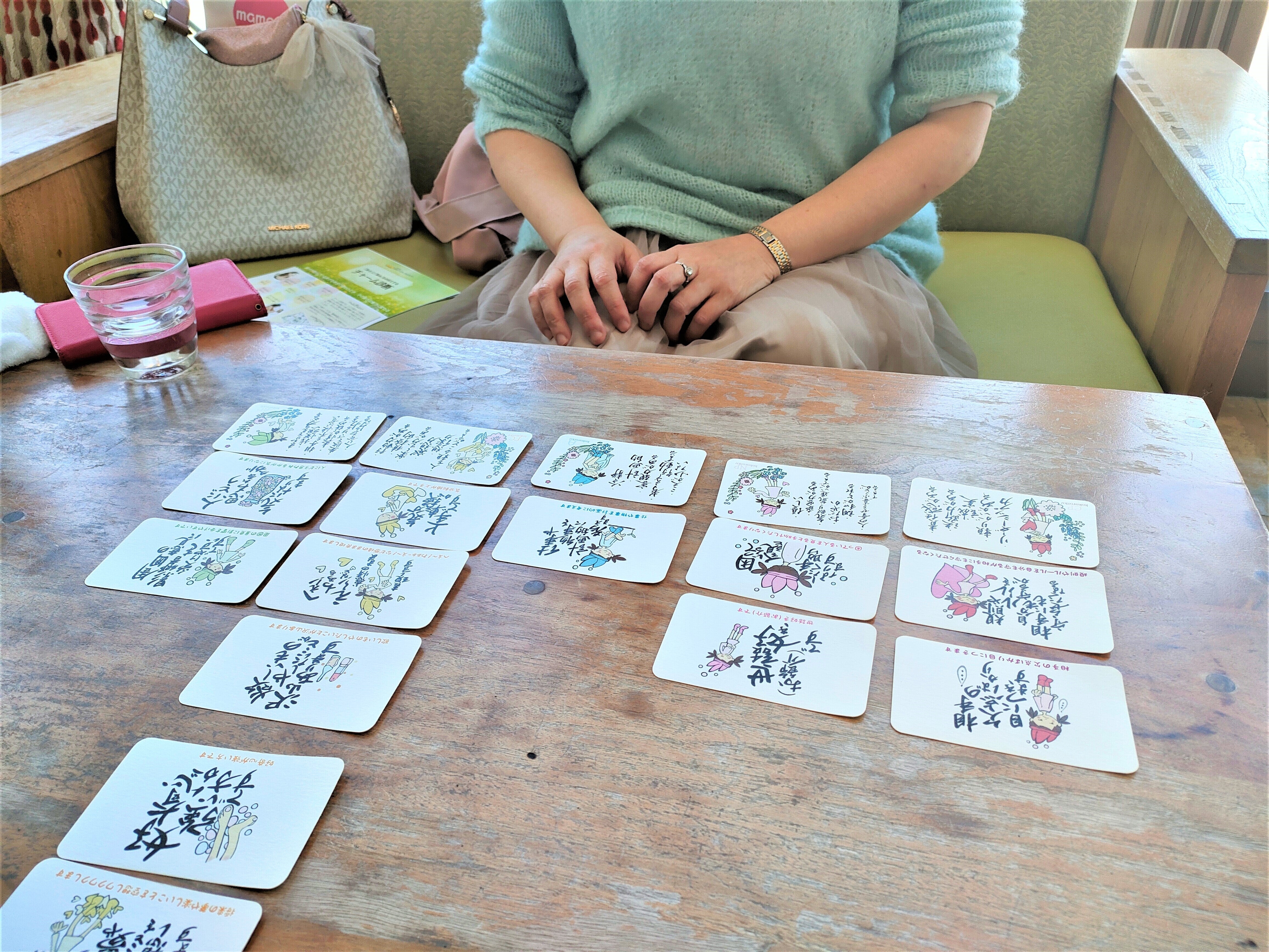 ハーブボール、アロマハンドマッサージ、占い、缶バッチ作りなど