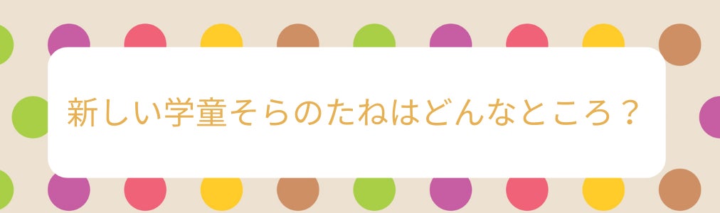 現在、学童保育「にじのたね」「やまのたね」を利用してくださっている児童の皆さん、保護者様、卒業されていった児童の皆さん、支えてくださった保護者様に深くお礼、感謝申し上げます。子どもたち同士、トラブルや喧嘩はつきもの。そこで、「みんな仲よし にじのたね」「けんかするほど仲がいい」という合言葉を作りました。トラブルがあった時、誰かが「みんな仲よし にじのたね」というと、みんなで「けんかするほど仲がいい」と言います。このように、子どもたちが楽しく、そして、お互いに思いやりを持って過ごせるように、たくさんの工夫と努力を重ねてまいりました。「にじのたね」、「やまのたね」そして「そらのたね」は今後も保護者様に安心してお子様をあずけていただけるよう日々丁寧に努力を重ねていきたいと思っております。新施設「そらのたね」をどうぞよろしくお願いいたします。