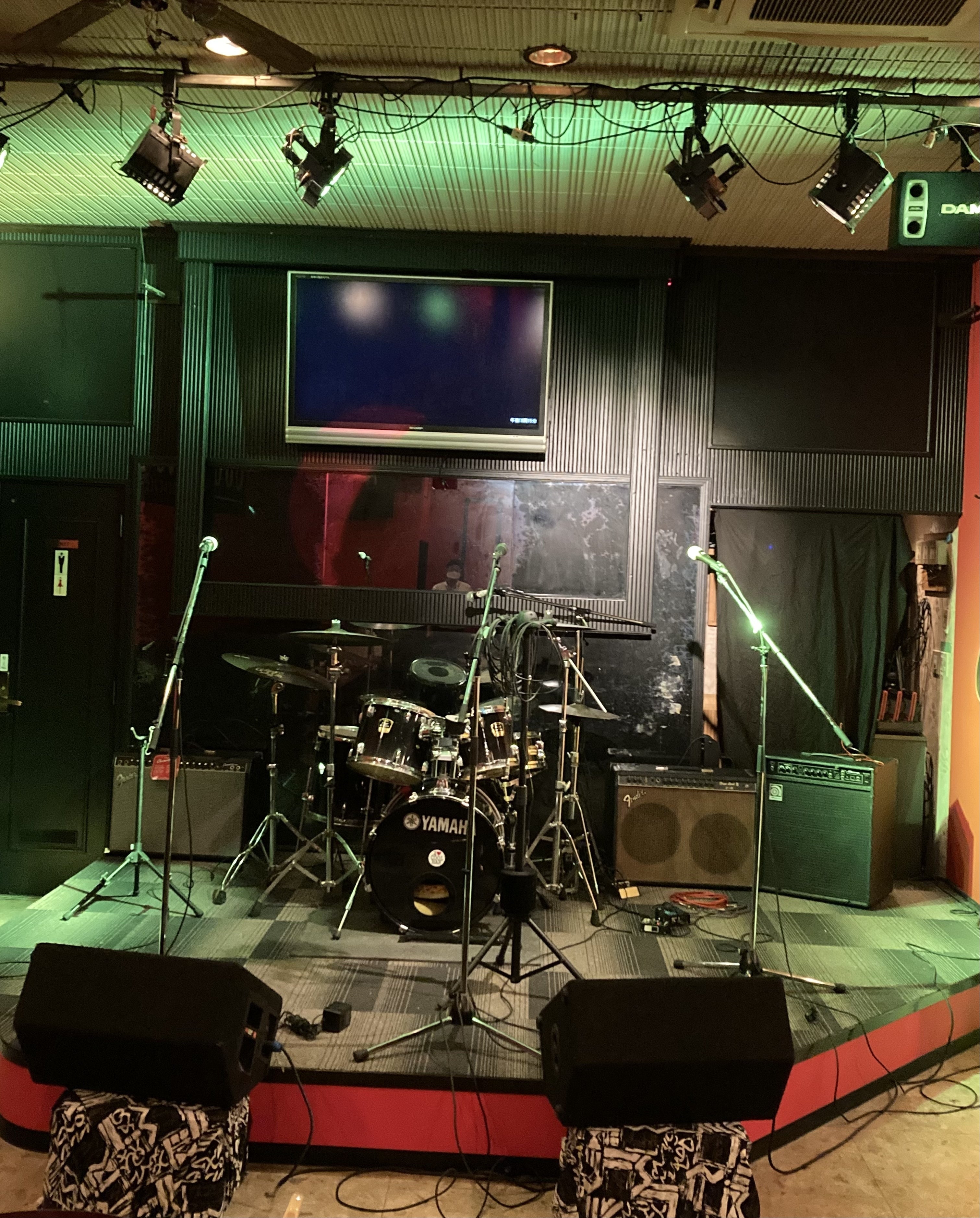 お世話になります。6人編成のバンドでも、ある程度ではありますが余裕を持って演奏可能なステージの広さとなりました。モニターを乗せているものは、実はビール瓶の箱なんです。。そこに布切れを被せてあります。 中瓶ではなく、、大瓶用?に変えた方が良さそうですね。。