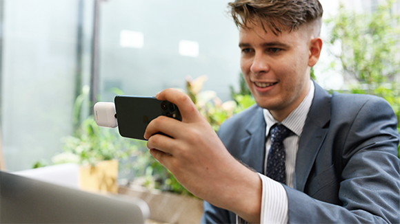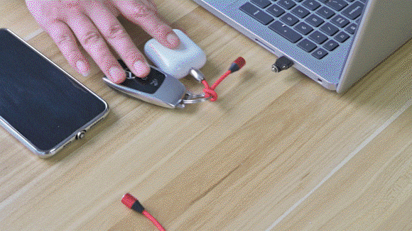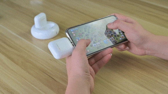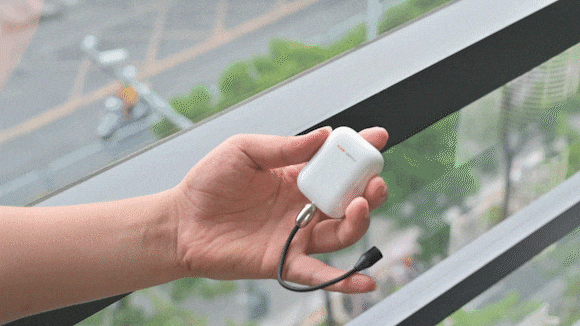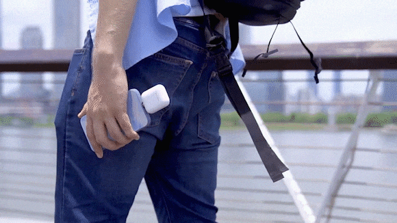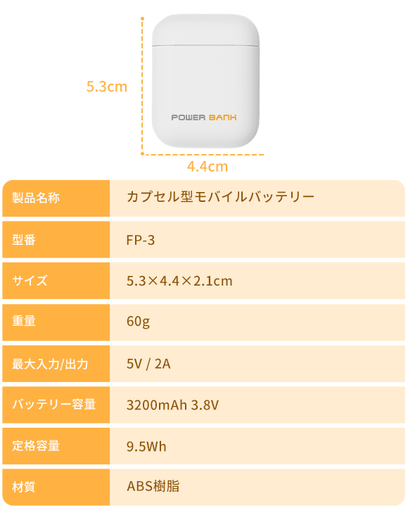 FP-3のサイズは5.3×4.4×2.1cm、重さはわずか60gで、AirPodsとほぼ同じ大きさです。ポケットにさっと入れて出掛ければ、いつでもスマホを充電することができます。ごちゃごちゃしがちなケーブルを携帯する必要はありません。