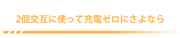 小型バッテリーが2つ付属していますので、1つを使い終わったら、充電しておいたもう1つに交換すればOK。手間は一切かからず、充電不足でスマホが使えなくなる時間もありません。