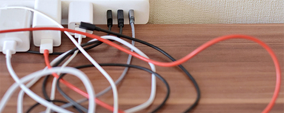 ✔ パソコン、スマホ、タブレットのケーブルがデスクでごちゃごちゃ。