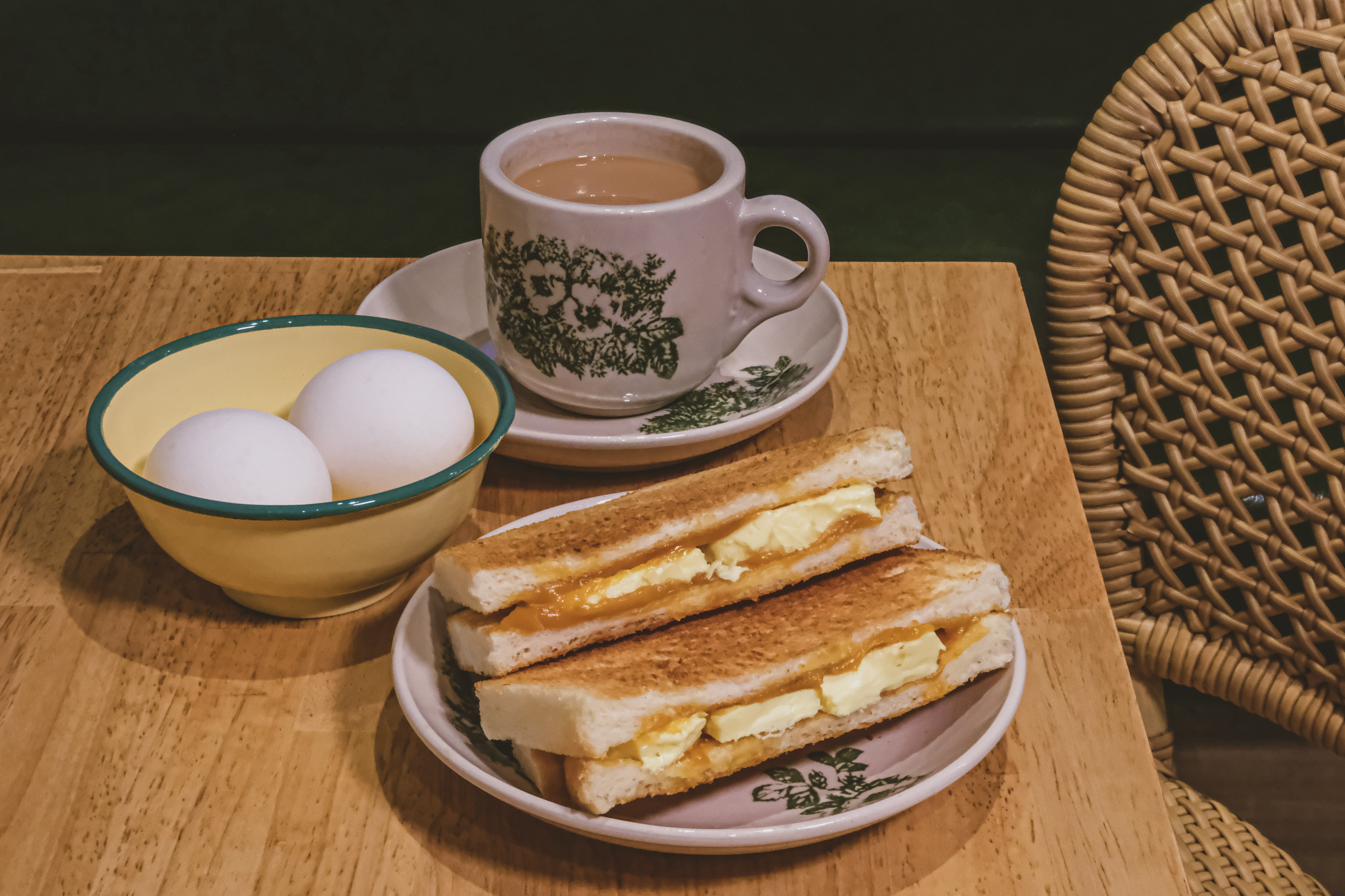 こんがり焼いたトーストにカヤジャムをたっぷりと塗り、スライスバターを挟んだカヤトーストとコーヒーは現地朝食の定番です 。マレーシアの朝食文化を体験したいならおすすめです!
