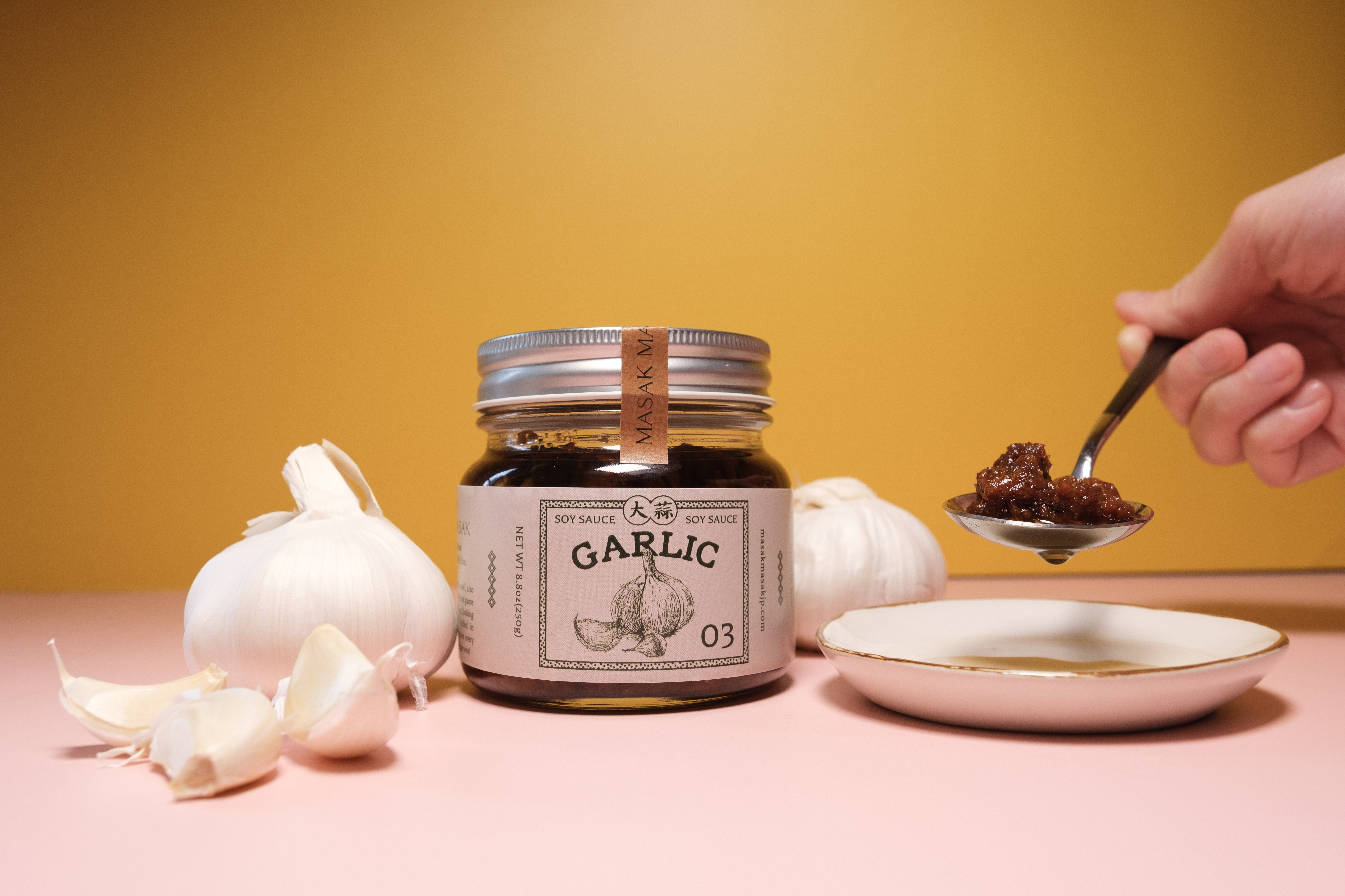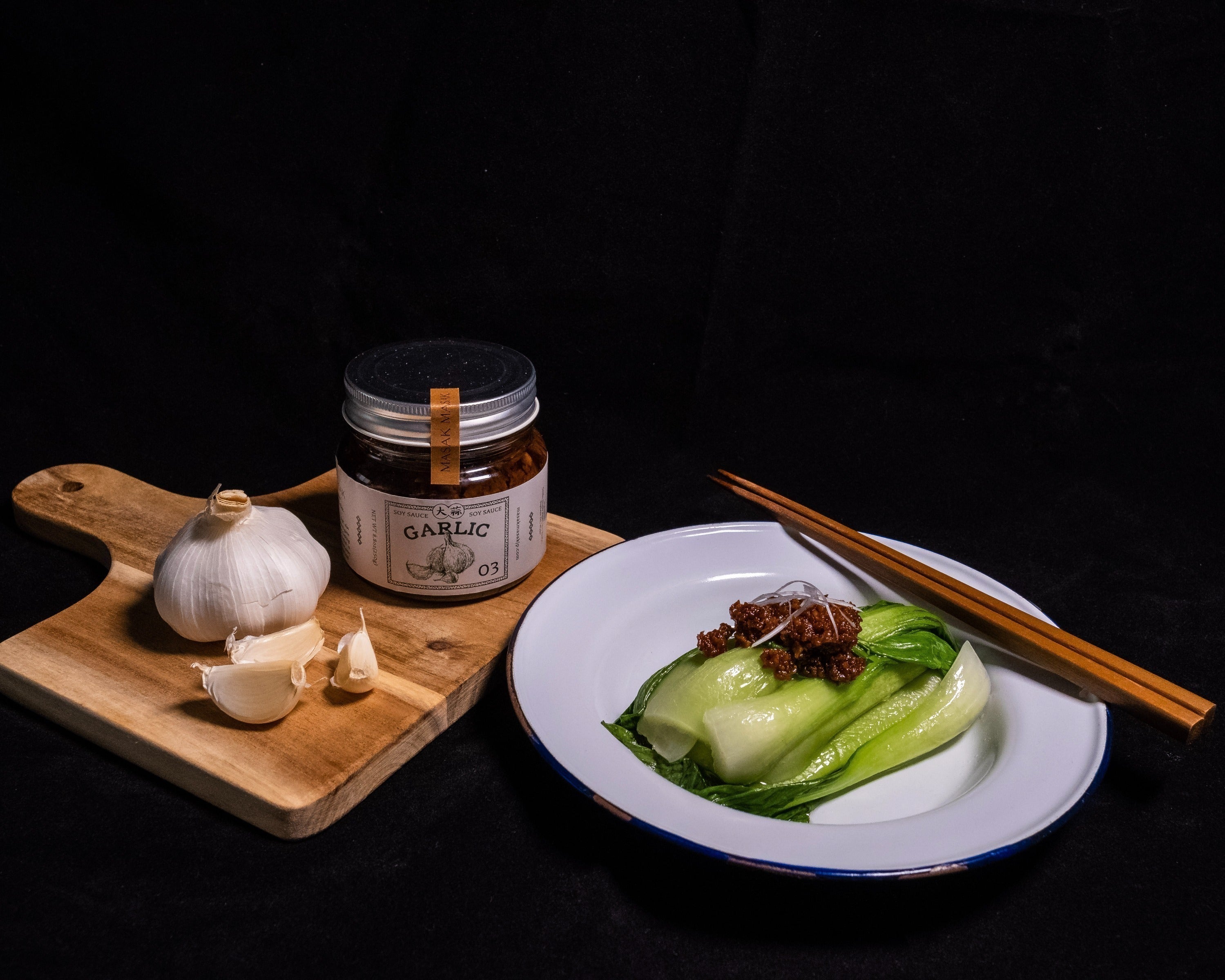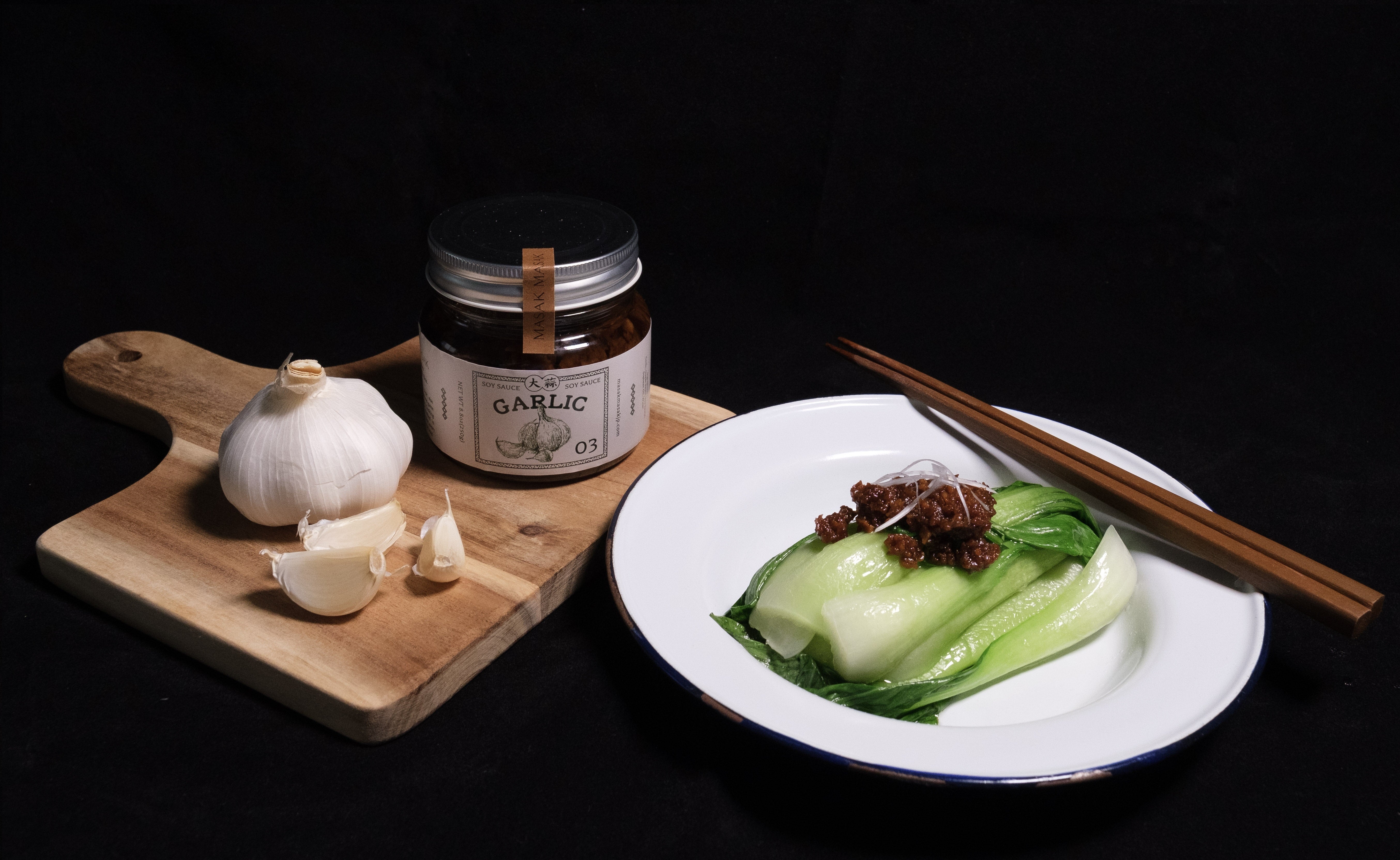 華人系マレーシア料理によく用いられるソースです。揚げたにんにく・醬油・オイスターソースを合わせ、にんにくの旨みに深みと香りを加えました。にんにくの具材感も楽しめる、しっかりとパンチのある味わいです。