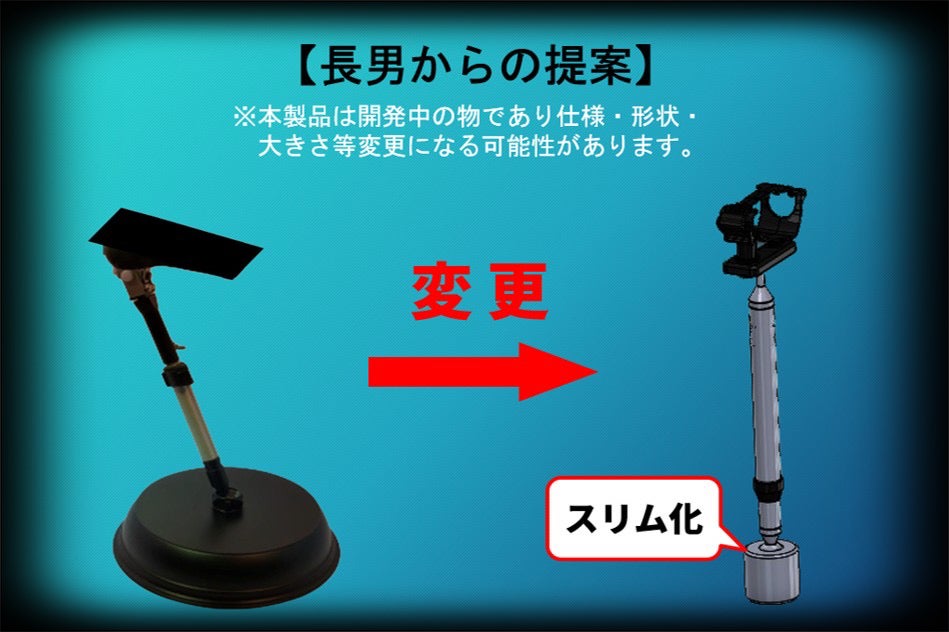 更に商品化・開発では長男(高1)も会議に参加し企業様からのご提案など念密に話し合い土台部分の見直し