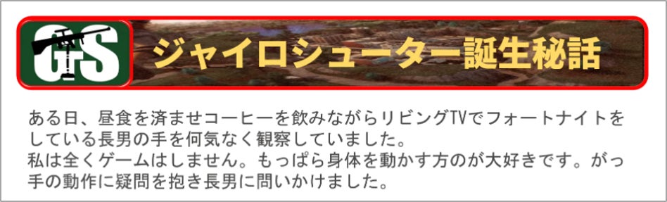 ゲームとは無縁であった私でも今ではジャイロシューターを使用してフォートナイトにすごくハマっています♬まさか50歳にしてゲームを始めるとは思ってもいませんでしたが... (笑)こんな私でもハマるのだから"ゲーム好きな方はもっと楽しめる♬"のではないか?と予想しています。このプロジェクトを成功させ子供から大人まで一人でも多くの方に使用してもらいたいです。