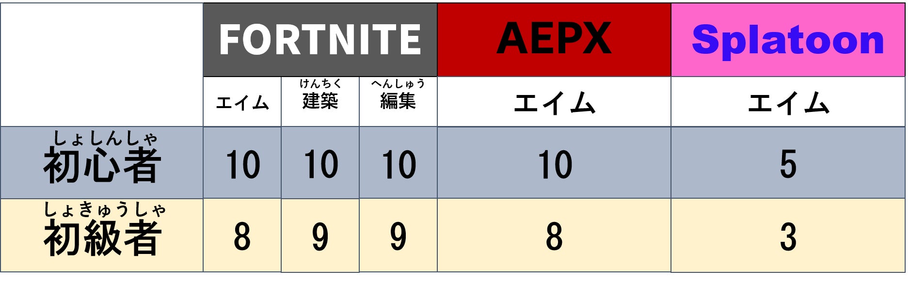 各ゲーム別で期待される効果(10点満点)