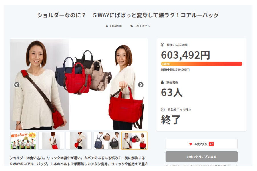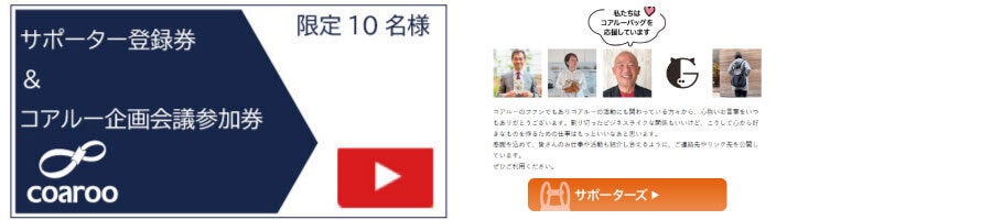 こんにちは。魔法の5WAYコアルーバッグだけを作り続けている(株)COAROOです。前回のプロジェクトではたくさんのご支援をありがとうございました。改めてお礼申し上げます。