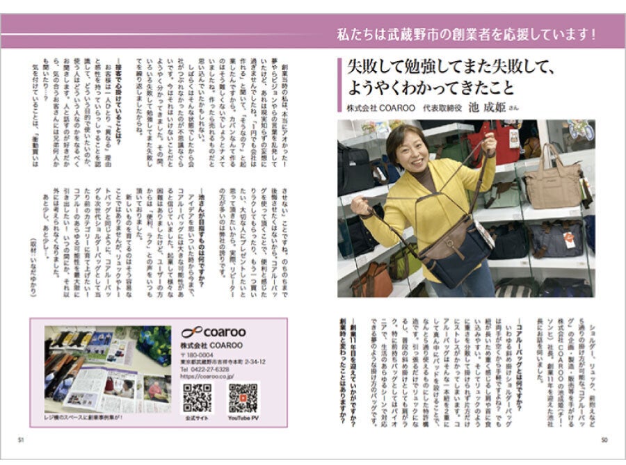 コアルーバッグはその斬新さが目立ち、発売前からマスコミとのご縁をたくさん頂き、受賞にも恵まれております。NHKのニュース番組「まちかど情報室」で取り上げていただいたり、WBSの「トレたま」、『日経MJ』新聞、業界紙の『ステーショナ』や『日刊工業新聞』でもお世話になりました。地元吉祥寺では「吉祥寺コレクション」というファッションショーに毎年参加、近くの方々に知ってもらうきっかけにもなりました。
